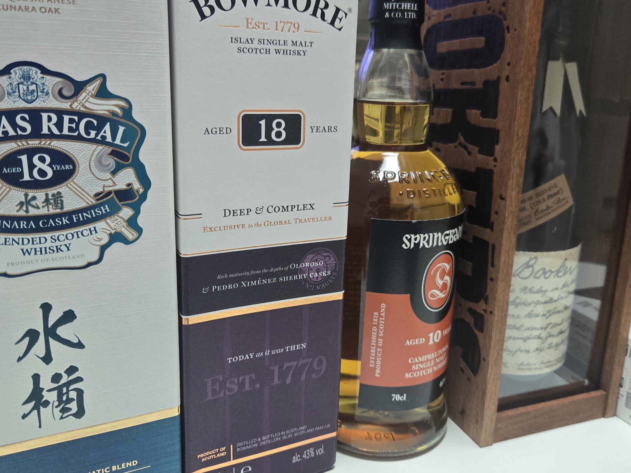 이번에 잠시 도쿄에 다녀올일이 생겨 커뮤니티에 리쿼샵 질문글을 올리고 추천해주신 곳들 둘러보며 위스키 구매를 했습니다 전리품 리스트로는 스뱅10년 보모어 딮컴 부커스 2023-01e 시바스리갈 18 미즈나라 캐스크 입니다 스뱅, 부커스는 시나노야 긴자점 앞에있는 레어위스키샵?이라는 조그마한 가게에서 18,000엔,17,000엔 주고 구입했습니다 시바스리갈은 리쿼마운틴 긴자777에서 10,000엔주고 구입했으며 보모어는 출국면세에서 두병남았길래 호다닥 15만원인가 주고 구매했습니다 여기저기 돌아다닐 시간이 없어 가격좋게 잘산지는 모르겠으나 한국보다는 확실히 저렴하게 산거 같아 기부니가 좋네요ㅎㅎ 도움주신 위플형님들 감사합니다 ㅎ 확실히 진짜 레어한 위스키들은 이미 털려서 없더군요..