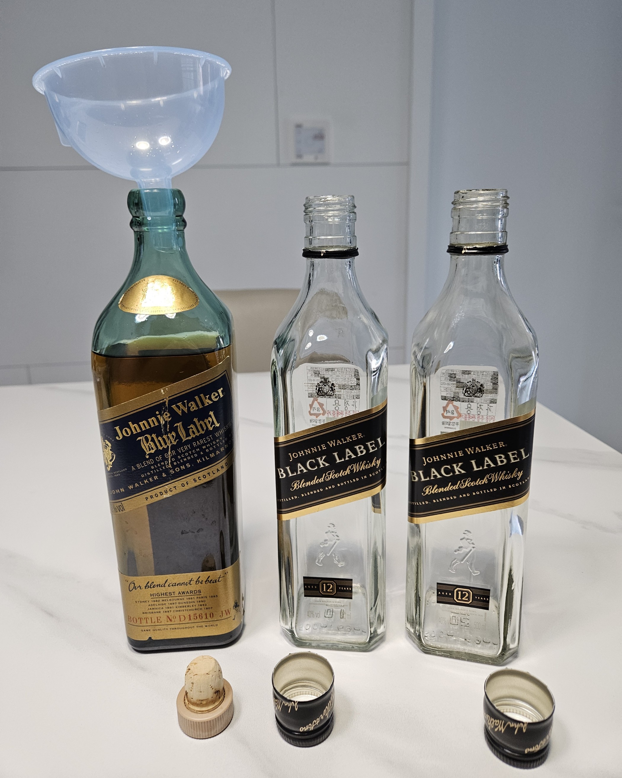 준비물: 대부분의 사람들이 좋아하는 그럴싸한 위스키 공병🍶 예) 블루라벨, 로얄살루트, 발렌30등등 그리고 적당한 싼마이 위스키 ㅋ 다들 미리미리 트랩카드 설치해서 설날연휴동안 술장을 안전하게 지키길 바랍니다😽