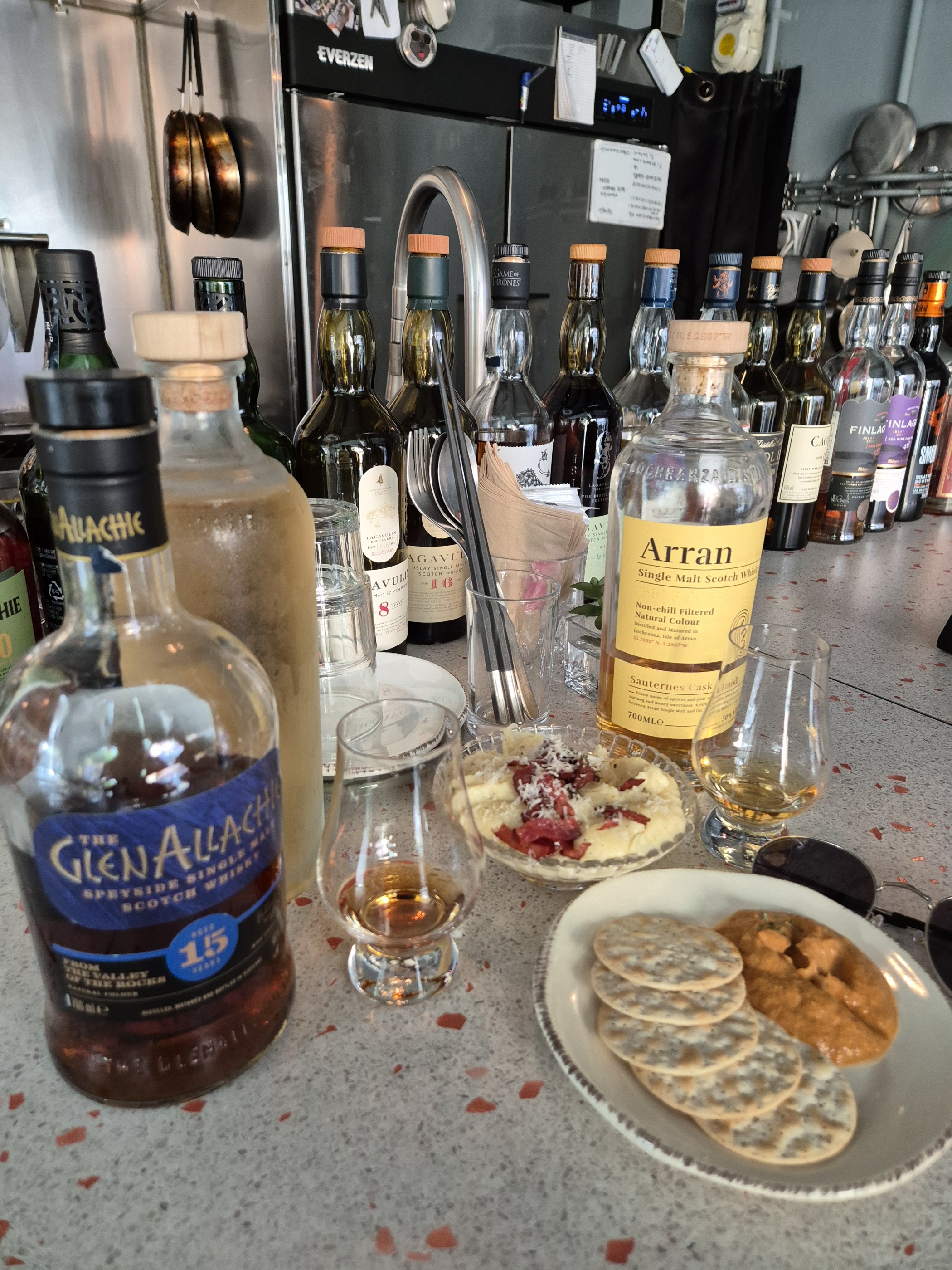 각종 위스키와 하이볼 안주를 파는 곳입니다 안주도 훌륭하고 못마셔보던 위스키도 먹으니 좋네요 가게는 바 느낌이어서 바텐더 분께서 만들어주는 술을 구경하는 재미도 있습니다~ 글렌 알라키 15년산 처음 마셔봤는데 너무 맛있습니다 ㅠ!