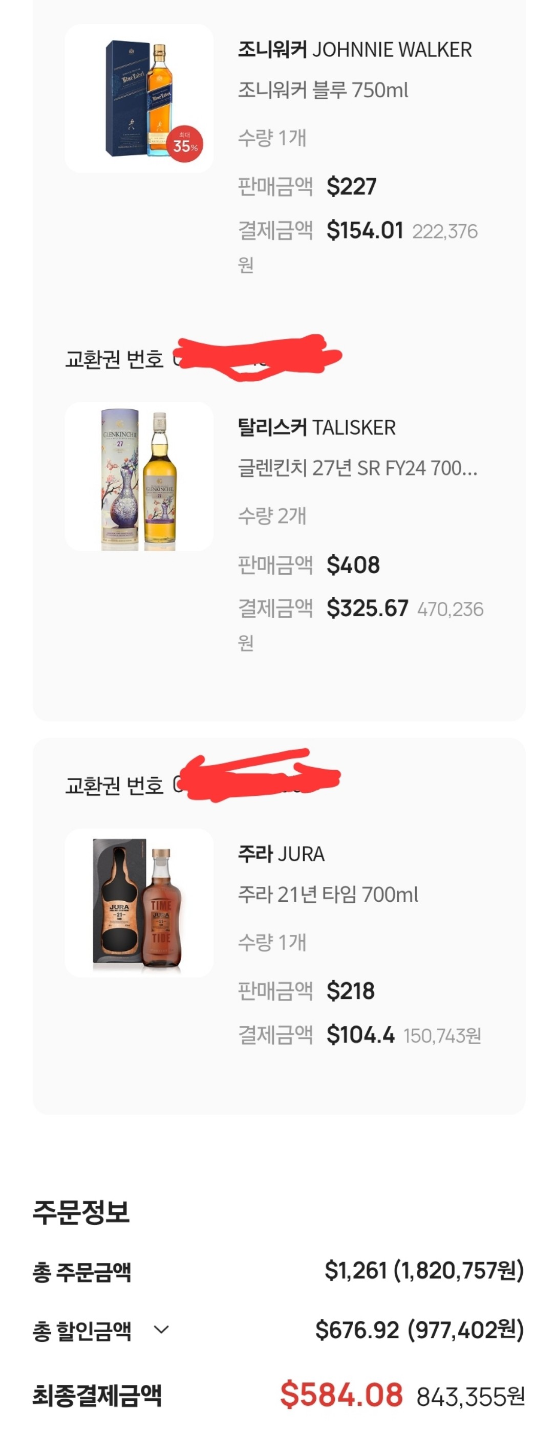 얼마전에 싸게구입한것 같아서 글썼었는데.. 글렌킨치2병 주라타임1병해서 78.2만원에 6만결제일 할인 3.2네이버포인트적립해서 69정도에 구매했었어요 근데 출국일이 다가와서 며칠전 다시 들어가보니..조니블루 셋트할인이 하네요... 똑같이 킨치2병 주라타임1병에 조니블루추가했는데 가격은 84.3정도.. 거기에 결제일 할인6만 네이버슈퍼위크적립 7만에 기본적립4.3 거의 67만원에 샀습니다. 개이득... 거기에 롯데카드 발급받아서 15만 사용 15만페이백 이벤트... 연회비 2만 빼면 13만원... 54만원쯤에 네병 구매했네요... 면세는 출국전까지 계속 들여다봐야 하나봅니다.ㅎㅎ 이정도면 충분히 만족스러워서 이번여행은 더 안보려구요~^^