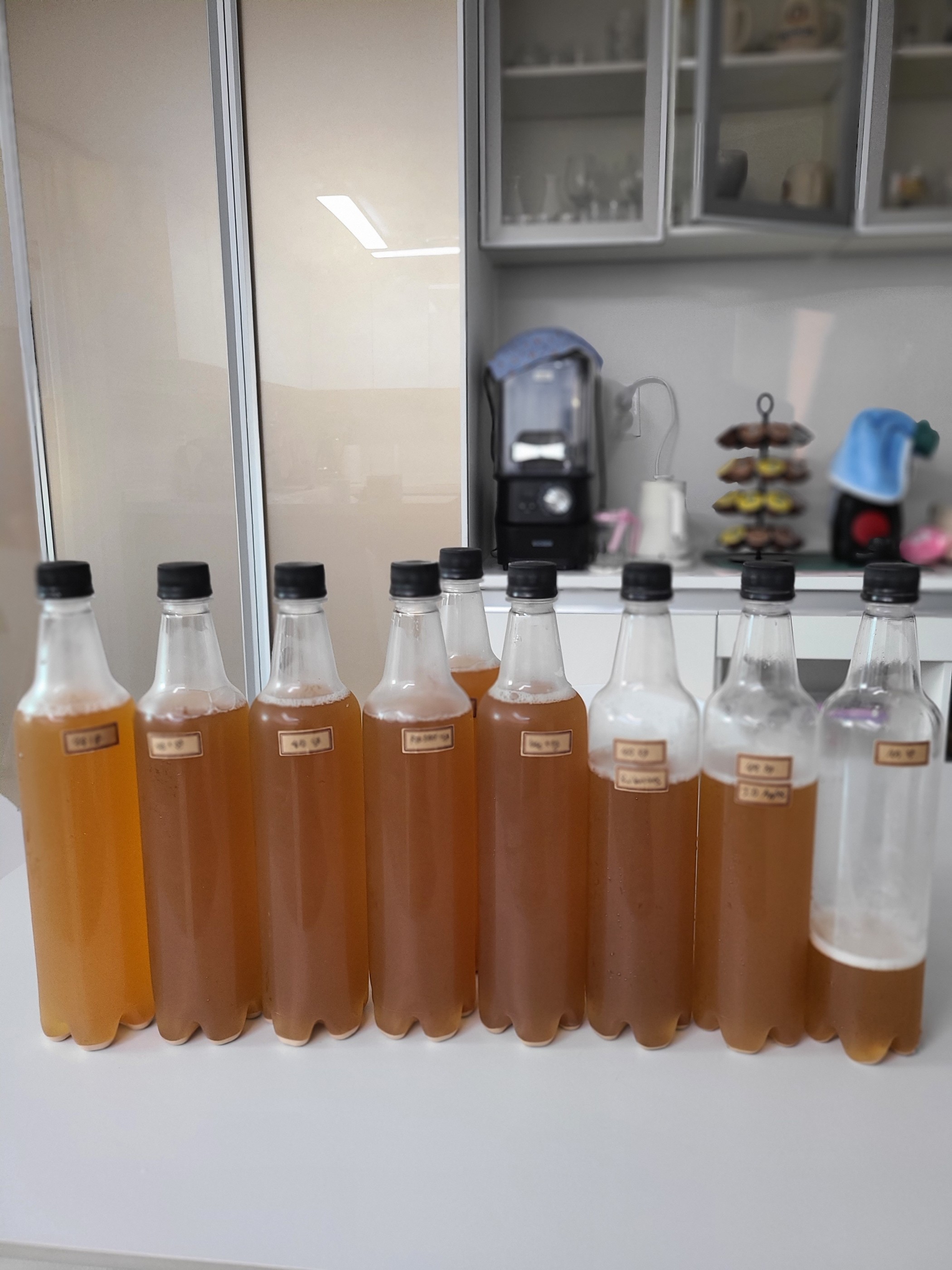 테라브루 맥주 키트를 구매해서 맥주 만들어봤습니다. 그리고 이왕이면 재미있는 맥주 만들어볼려고 다양한 바리에이션으로 만들었습니다. 기본 설탕 8g 설탕 8g + 일라이저 크레이크 배럴프루프 설탕 8g + 발렌타인 30 설탕 8g + 라프로익 cs 설탕 8g + 미즈나라 오크칩 설탕 5g + 잭다니엘 애플 설탕 5g + 바카디 모히또 설탕 5g 설탕 14g 이상한 바리에이션을 해봤습니다. 한번에 다 마실 수는 없어서 조금씩 후기 늘려가겠습니다. (수제 맥주이기도 하고 약간은 과발효 된 것 같은 느낌이 있어서 다른 후기들과는 맛이 상이할 수 있습니다.) 일단 기본 맥주 후기입니다. *설탕 8g 상쾌한 에일 향. 시원한 향에 풍부한 맥아 향이다. 오렌지, 라임의 시트러스도 느껴지고 꿀의 단내도 연하게 있다. 맛은 조금 쌉싸름한 홉에 신선한 느낌이 풍부하다. 오렌지 제스트의 뉘앙스와 고소한 보리. 피니쉬에서도 부드럽고 깔끔하다. 캔맥주 특유의 비릿한 향이 적어서 상당히 만족스럽다. 탄산감이 조금 적어서 아쉽긴한데 거품이 엄청 오밀조밀하다. 기준점 : 3점 -------- 발렌타인 2oz 첨가 강한 알콜!?!? 상당히 찌른다. 기본적인 맥주랑 큰 차이는 없는데 고소한 향이 조금 더 강하다. 그리고 단내가 더 난다. 가장 큰 차이는 피니쉬에서 나 발렌타인!!이라는 느낌이 강하게 올라온다. 흠.. 발렌30 넣은거 치고 상당히 별로다. 그리고 도수가 엄청 올라간 것 같이 독하다. (이거 마시고 cs 넣은 맥주는 망한것 같다고 느꼈다) 점수 : 1.5점 -------- 잭다니엘 애플 2oz 첨가 오!!! 사과 향이 강하게 올라온다. 그런데 약간의 어색한 느낌의 알콜이 함께 올라온다. 맥주 알콜이랑 잭다니엘 알콜이 따로 논다. 맛에서는 애플 느낌이 나지 않는다. 하지만 피니쉬! 끝에서 엄청 사과가 올라온다. 오...!! 처음과 끝이 재미있다. 2.5점 -------- 마시면서 깨닳은건데 2차 발효하면서 효모도 조금 바꾸고 콜드크래시 과정까지 고려해가면서 위스키 도수로 인해 효모가 죽지 않게 노력했는데, 완성된 맥주에 위스키 타 먹는거랑 큰 차이가 있나..?????????? (빨간약 먹어버렸다)