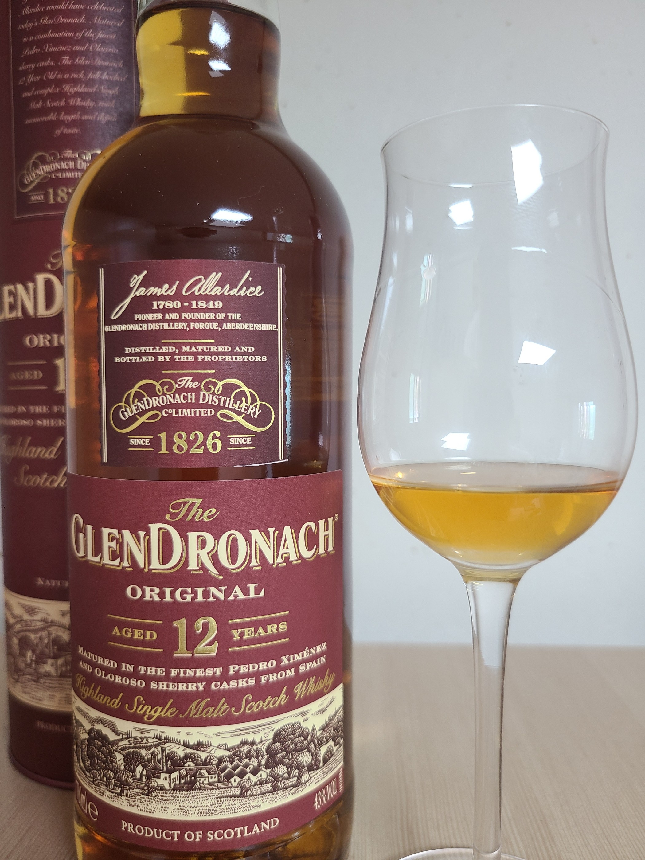 종류 : 싱글몰트 위스키 도수 : 43% N - 향신료, 건포도, 대추야자, 베리, 빵, 풀, 오크 드로낙에서 느껴지는 향신료의 매운향. 약간 꾸덕한 느낌이 드는 달달한 향이면서 건포도와 대추야자의 셰리다. 알콜이 아직은 꽤 올라오면서 찌르지만 베리의 화사한 느낌도 느껴진다. 고소한 빵 같은 뉘앙스와 젖은 풀 같은 느낌도 살짝 올라온다. 끝에서 살짝 오키한 느낌과 포도가 다시 올라온다. P - 정항, 셰리, 핵과류, 베리, 몰트, 다크 초콜릿 아직은 단 맛보다는 맵고 쌉싸름이 더 강조되는 것 같다. 핵과류, 베리, 강한 셰리의 느낌이 들면서 상당히 달달하다. 몰티한 느낌과 약간의 고소함도 느껴진다. 매운 맛은 정향의 매운 느낌으로 올라오지만 전반적으로는 부드러운 질감이다. 우디함의 쌉싸름보다는 다크 초콜릿의 쌉싸름에 가까운 맛이다. F - 정항, 나무, 다크 초콜릿, 셰리 과일이 상당히 많지만 아직은 알콜이 찌러서 그런지 거칠다. 오래간만에 마시지만, 역시 시간만 지나면 데일리 위스키의 정석.
