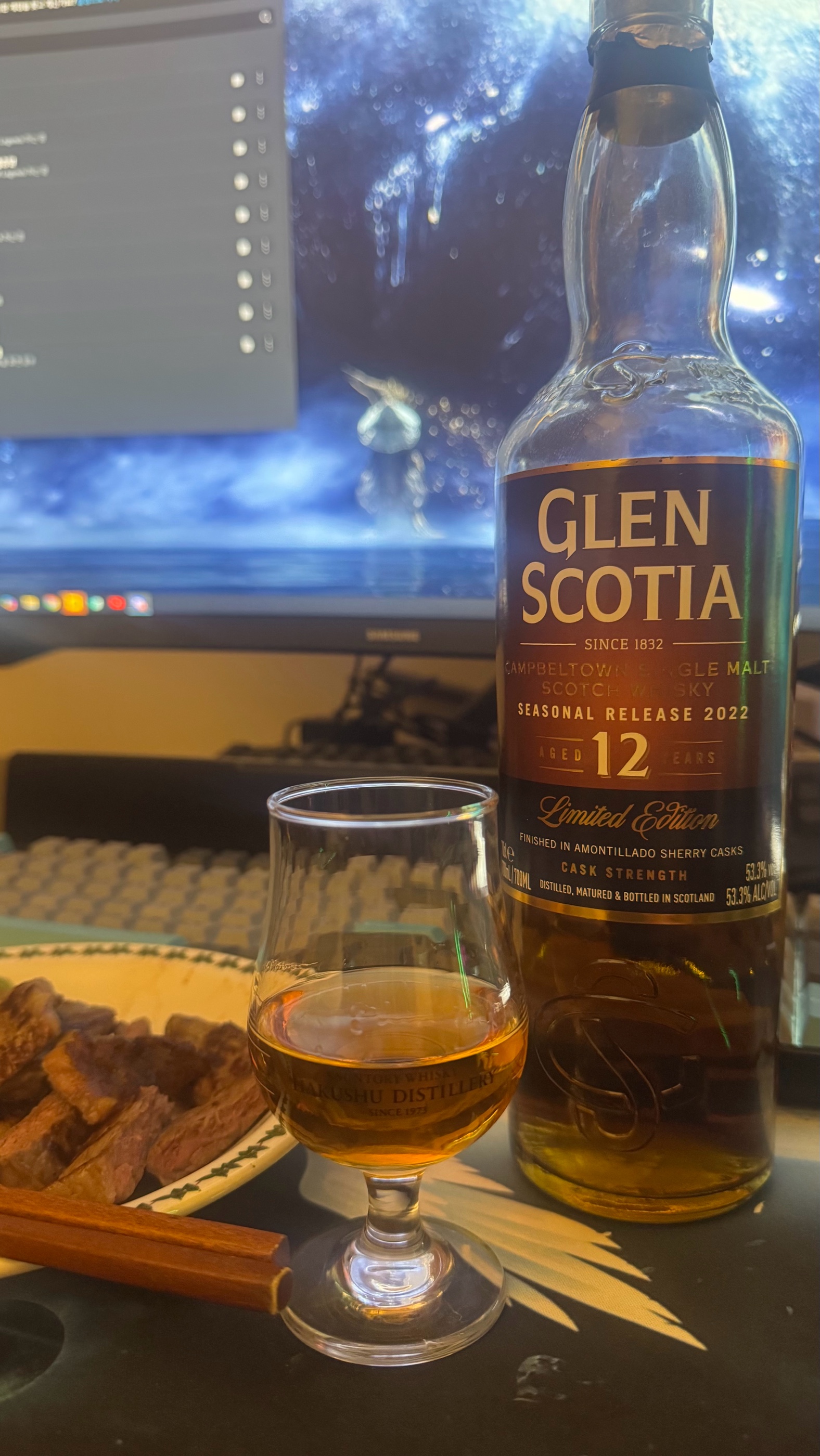 일본에서 구매한 글렌스코시야 2022릴리즈 12cs입니다 평이 갈리지만 전 최근 마신것중에 제일 좋았습니다 가격도 저렴한 축입니다 단 브리딩 전후 맛 차이가 심하니 길게 시간을 두고 드세요