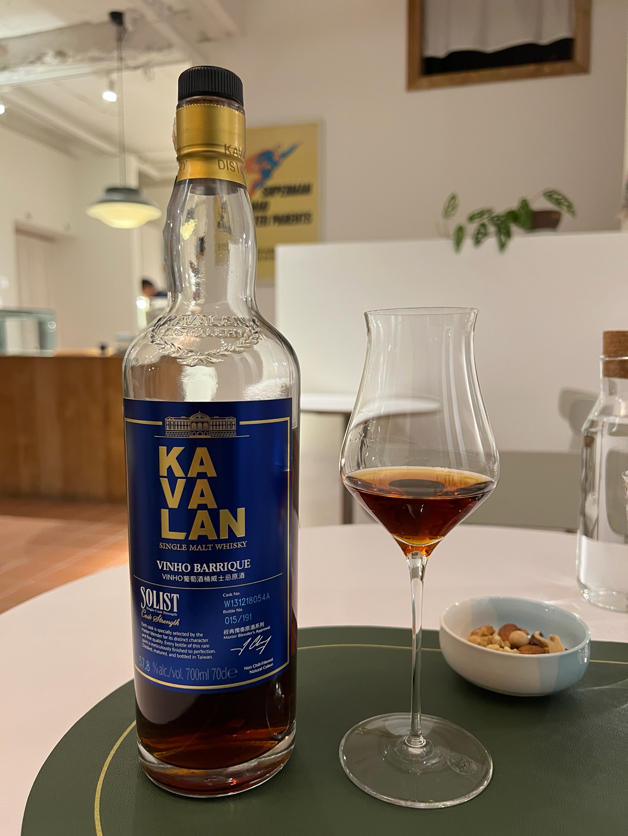카발란 솔리스트 비노 (이안창 구형) 전형적인 비노향인 찐득한 건베리 향이 강하게 느껴짐. 꾸덕한 향은 아니고 하이노트의 밝은 셰리, 와인 계열의 향. 아주 달콤한 비노의 맛. 현행 비노에서 느꼈던 나무 쓴맛과 같은 오프 노트가 없는 맛있게 달콤한 꿀에 절인 베리같은 맛. 입에 머금었을 때부터 삼키고 나서까지 입 안에 쪼임이 아주 좋음.