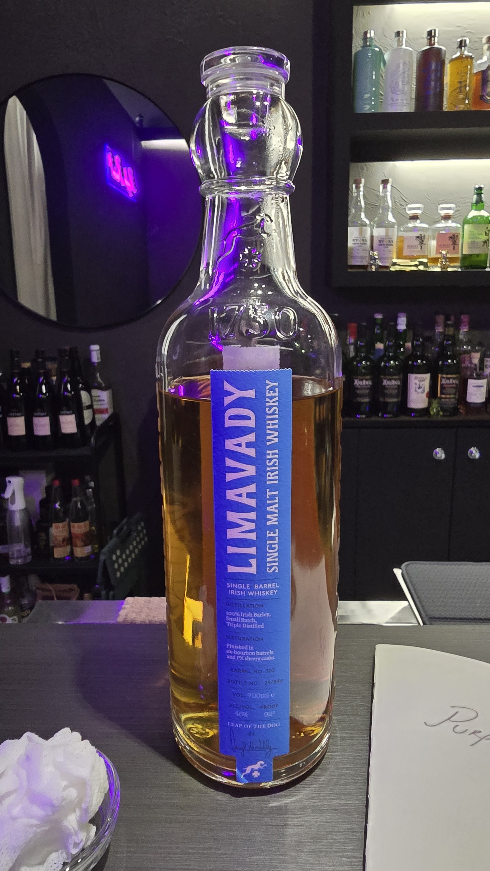 리마바디 싱글배럴 아이리쉬 위스키 EX-버번 캐스크 + PX셰리 캐스크 46% 비주얼 : 황금색, 레그는 약한편 향 : 청사과, 민트, 약간의 곡물향(단순 몰트느낌은 아닌듯), 은은한 셰리느낌 과일 맛 : 바닐라 아이스크림, 약간의 스모키, 깔끔한 듯하나 곡물의 은은함 총평 : 가볍다고 느끼는 사람도 있겠지만, 어느 한곳 모난데 없이 부드럽게 넘어가는 느낌이 강한 좋은 위스키라 생각한다 개인적으로 포지션은 아벨라워12년과 견줘도 될 수준.