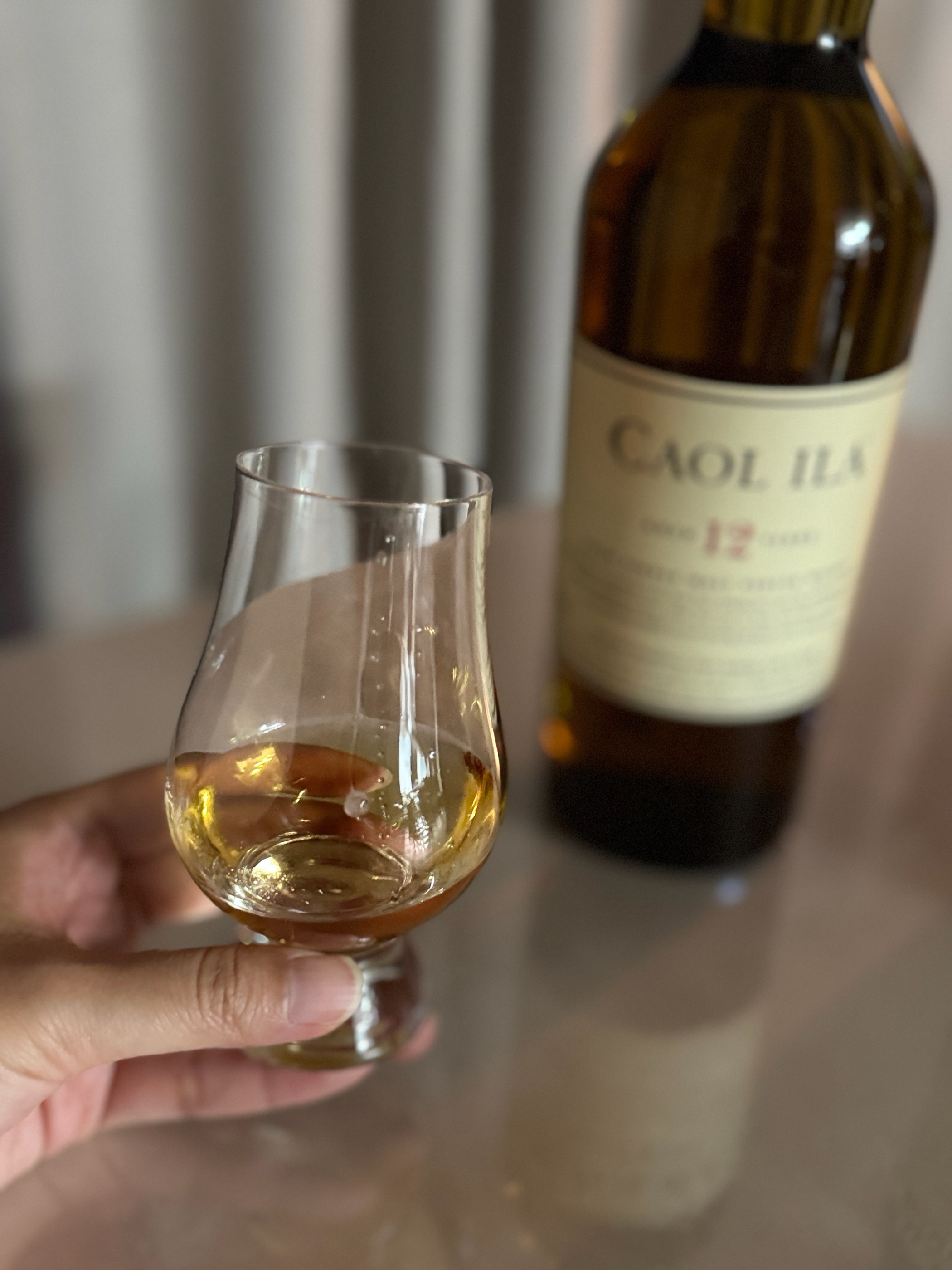 조용하지만 깊게 스며드는 아일라 위스키 쿨일라 12년(Caol Ila 12 Years Old)입니다. ↘️Tasting Notes 👃Aroma – 향 첫 향은 은은한 훈연 나무 자극적이지 않게 다가오는 따뜻한 스모크. 바닷가를 거니는 듯한 해조류 향, 그 뒤로 레몬 껍질, 사과의 청량한 시트러스 노트까지 스모키하면서도 상쾌합니다. 👅Palate – 맛 입에 머금자마자 부드러운 스모크가 먼저 퍼지고, 바닐라, 꿀처럼 달달한 맛이 뒤따라요. 혀끝엔 후추를 뿌린 듯한 짠맛과 해풍 같은 염도. 복합적이지만 무겁지 않고, 섬세한 밸런스가 돋보입니다. 🔥 Finish – 피니시 드라이하고 깔끔한 마무리. 해조류의 짭짤함과 허브 같은 산뜻한 잔향이 오래 남아요. 스모크가 사라지지 않고 조용히 머무는 느낌이 좋습니다. 🍽 페어링 추천 굴, 훈제 연어, 해산물 요리, 양고기 👉 니트 / 하이볼 OK 🚫 온더락은 비추천 (물맛 지배) 📌 추천 대상 ✔ 피트 위스키 입문자 ✔ 라프로익/아드벡이 부담스러웠던 분 ✔ 조용히 혼자 술 마시고 싶은 날 🙋♀️한줄평 잔을 비우는 순간 바닷가에서 불을 피운 듯한 훈연 향을 느끼고 싶다면 쿨일라 12년 ---------------------------- 📝 Caol Ila 12 Years Old 📍Islay, Scotland 🥃 Lightly peated Single Malt 🪵 아메리칸 오크 12년 숙성(43% ABV) 💰 ₩78,000 (2025년 6월 국내가 기준) ⭐️ 별점: 4/5