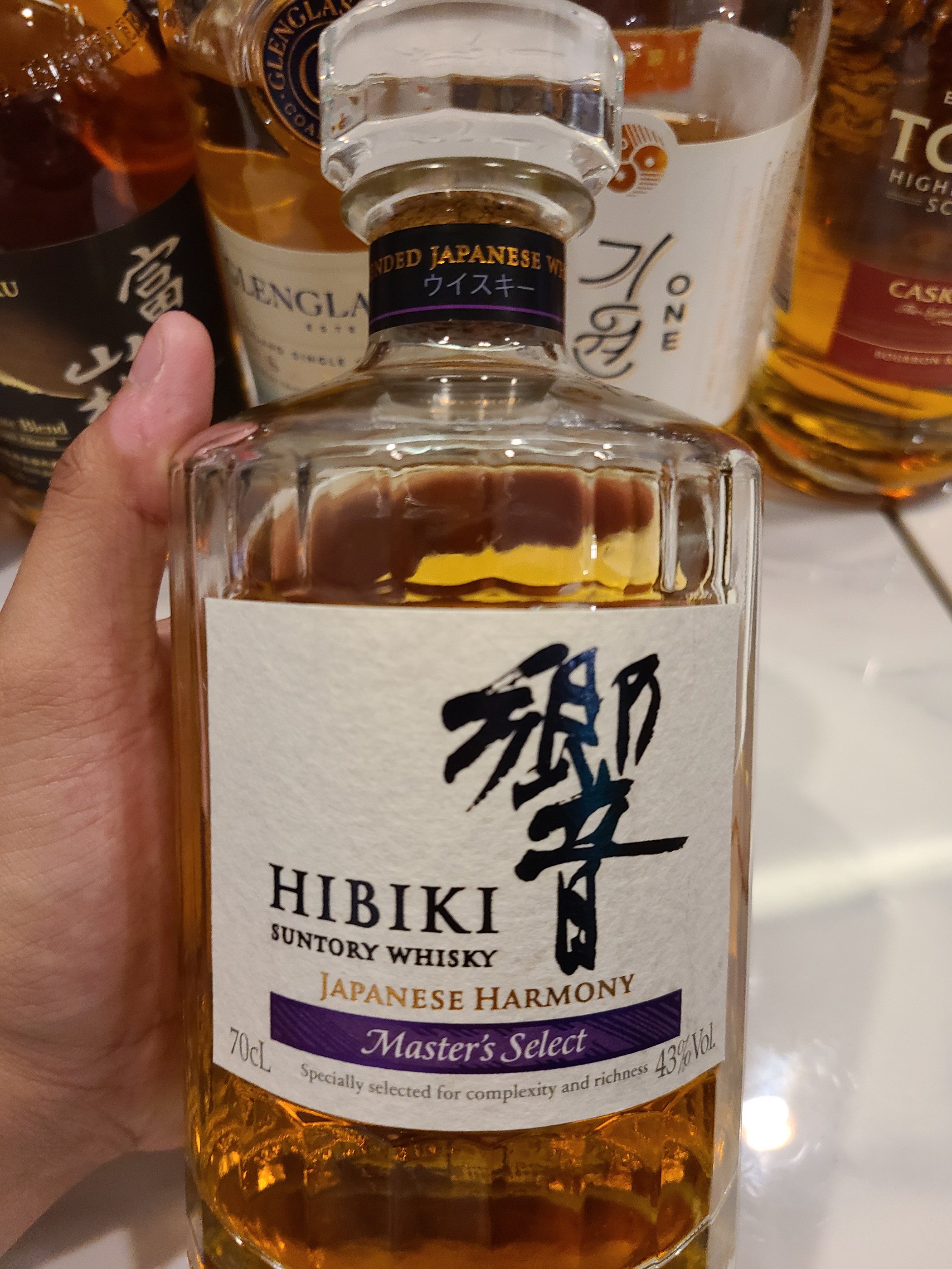 종류 : 재패니즈 위스키 도수 : 43% 히비키 블렌더스 초이스랑 캐릭터가 많이 겹칩니다. N - 꿀, 설탕, 꽃, 청사과, 오렌지, 오크 블초보다 조금 더 달달한 향이다. 꿀 한 스푼에 설탕을 조금 더 섞은 느낌이다. 꽃의 플로럴도 이쪽이 더 강하게든다. 청사과의 뉘앙스도 있으면서 블초랑 다르게 오렌지 같은 시트러스도 있다. 오크의 느낌도 휠씬 부드러워졌다. 약간의 짠내도 있으면서 엄청 화사하다. 하나 아쉬운 것은 약간의 비릿함이 올라왔다. P - 꿀, 건과류, 청사과, 포도, 빵, 초콜릿, 탄닌, 오크 비릿한 느낌을 잡아서 그런가 맛에서도 블렌디드 특유의 비릿함이 잡힌다. 그걸 제외하고는 꿀, 건포도에서의 달달함이 먼저 느껴진다. 블초에서는 못 느낀 건과류의 고소함도 있다. 과일에서는 청사과가 가장 가깝다. 또한, 빵 같은 고소함도 함께 있으면서 초콜릿의 뉘앙스도 보여진다. 시간이 조금 더 풀리면서 꿀의 단 맛이 더 강해진다. 끝으로 탄닌감과 적당한 오크로 마무리 된다. F - 꽃, 건과류, 꿀 마스터즈 셀렉트 예전에 잘 마신 기억이 있는데 이번에는 유난히 아쉬웠다.