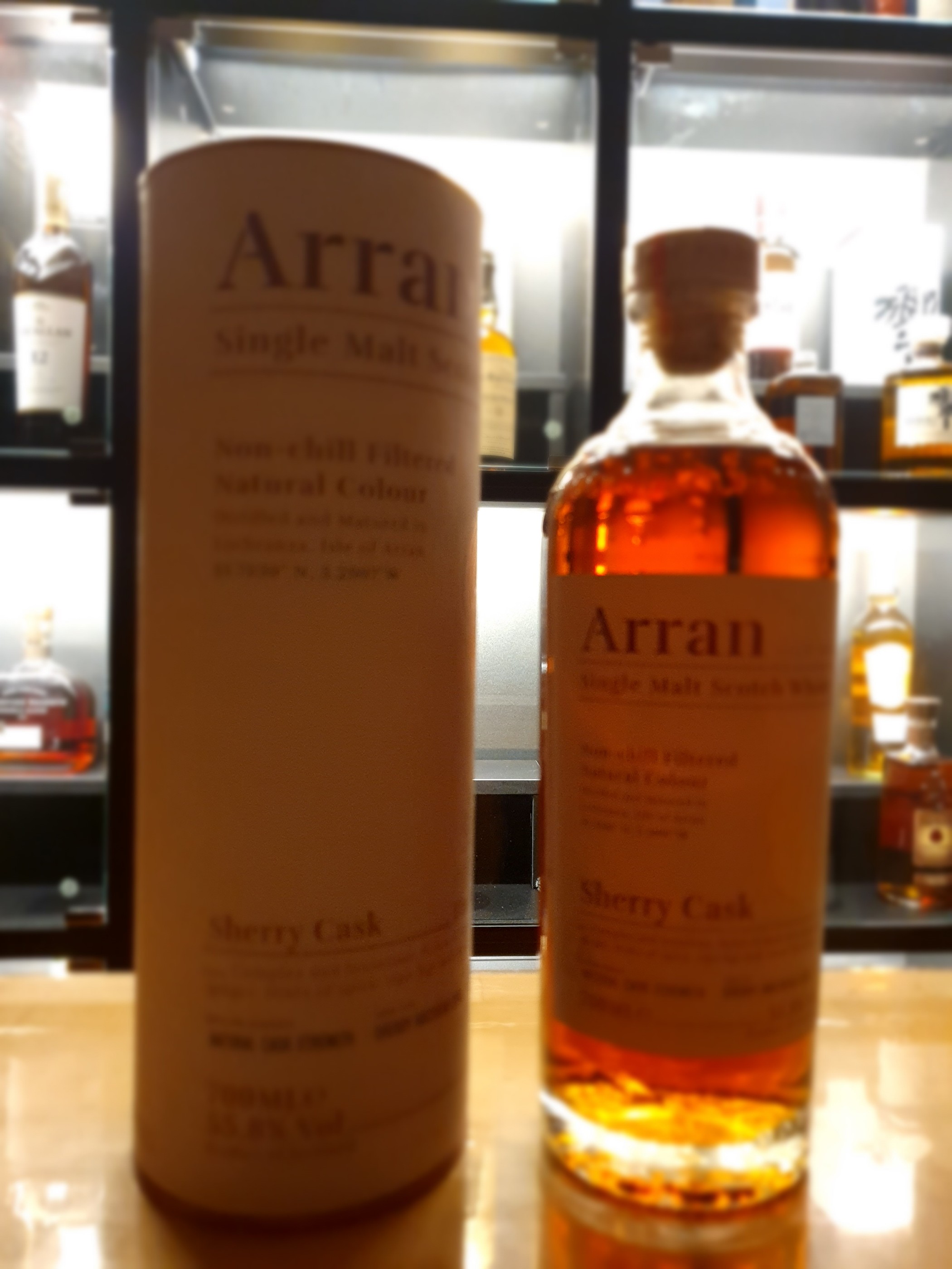 제품명 : 아란 쉐리 캐스크 분류: 싱글 몰트 스카치 위스키 숙성: 퍼스트필 올로로소 셰리 홉헤드 (100% 셰리 캐스크 숙성) 도수: 55.8% (캐스크 스트렝스, 정식 표기는 배치별 약간 변동 가능) 🔸 색상 (Color) 짙은 루비 브라운→ 올로로소 셰리 캐스크에서 오는 자연스러운 진한 색감 (무착색) 🔸 향 (Nose) 달콤하고 진한 셰리 아로마 다크 체리, 말린 자두, 무화과 초콜릿, 시나몬, 정향 캐러멜라이즈드 브라운 슈거 오크와 약간의 견과류 ✔️ 셰리 위스키 특유의 농축된 과일향이 강렬하면서도 우아하게 퍼짐 🔸 맛 (Palate) 풀바디, 진하고 입체적인 구조 레드 와인, 다크 초콜릿 스파이시한 시나몬과 육두구 설탕절인 오렌지 껍질, 말린 베리류 오크에서 오는 탄닌감과 균형 잡힌 쓴맛 ✔️ 단맛과 드라이함의 조화가 뛰어나며, 도수가 높지만 거칠지 않음 ※ 물을 살짝 희석하면 과일 향과 스파이스가 더 풍부하게 펼쳐짐 🔸 피니시 (Finish) 긴 피니시, 따뜻하고 드라이한 여운 다크 체리, 오크, 스파이스 약간의 허브와 다크 카카오의 쌉싸름함 ✔️ 셰리의 풍부함이 입안에 오래 남으며 고급스럽고 안정적인 마무리