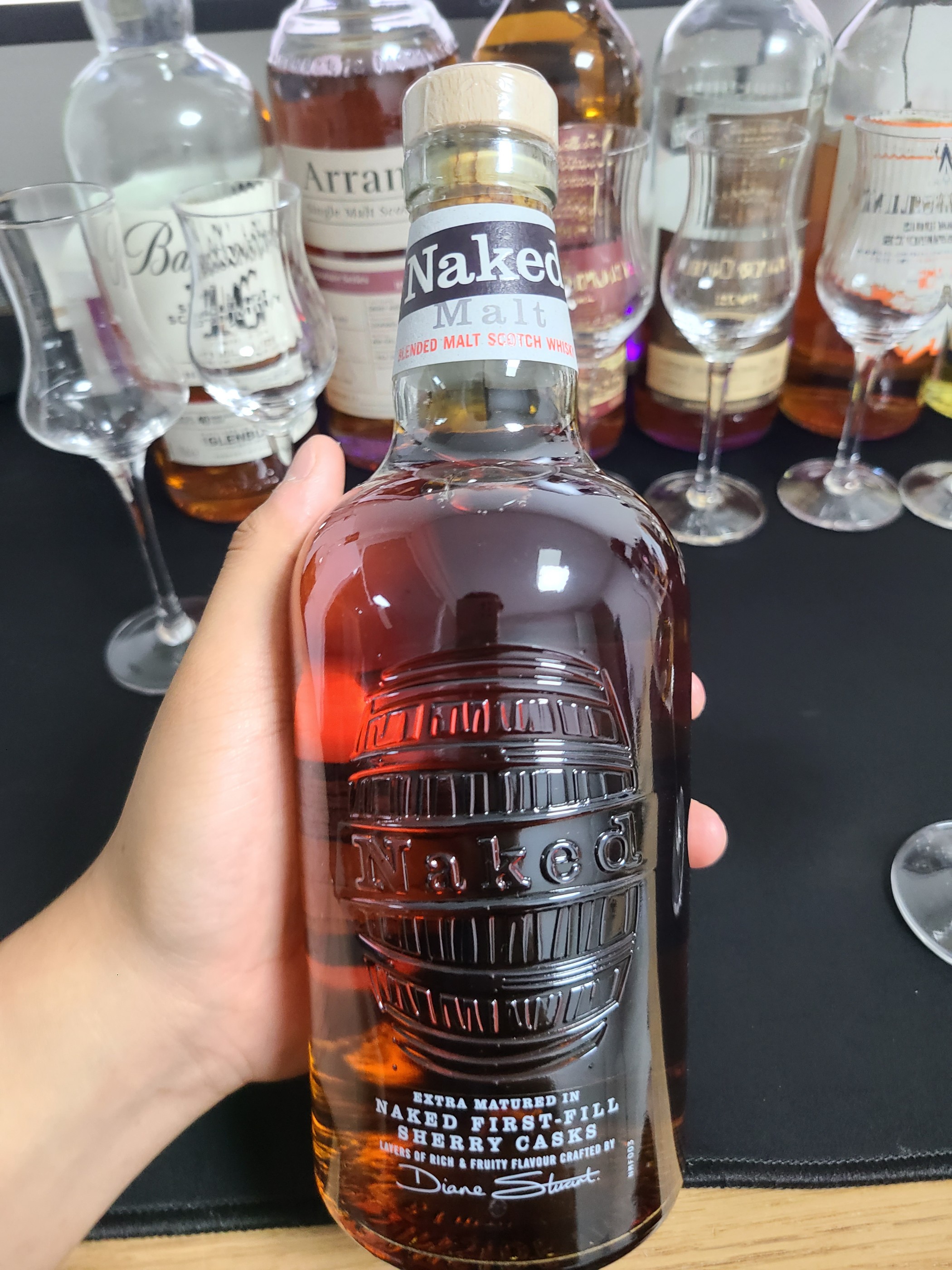 종류 : 블렌디드 도수 : 40% N - 셰리, 조청, 꿀, 건포도, 몰트 알콜이 꽤 지른다. 하지만 셰리에서 느껴지는 단 내는 정말 강하게 느껴진다. 단내가 조청 같을 정도로 강하다. 몰트향도 강하게 잡히면서 가성비 블렌디드이긴하다. 향이 조금 풀리면 레드와인 뉘앙스도 보이고 탄닌도 살짝 잡힌다. 하지만,,, 블렌디드 특유의 비릿함은 어쩔 수 없다. P - 오일리, 꿀, 조청, 사과, 건포도, 젖은 나무, 몰트 약간의 오일리함과 강한 단 맛. 스파이시함도 거의 없고 정말 달다. 꿀이긴한데 거기보다 조금 더 달다. 사과랑 건포도의 과일. 젖은 나무 뉘앙스도 살짝 있다. 고소한 몰트한 느낌이랑 부드러운 목넘김. F - 오크, 꿀 남는게 있어야하는데, 떫은 맛 살짝 빼고는 없다. 네이키드 몰트 위스키 초창기에 한번 마시고 늘 위린이 추천했는데, 다시 마셔봐야겠다 하고 바틀을 구매했지만 못 마실 것 같다. 어떻게 소비할지,, 고민이다. 위스키 좋아하는 지인 있으면 선물로 줘야겠다.
