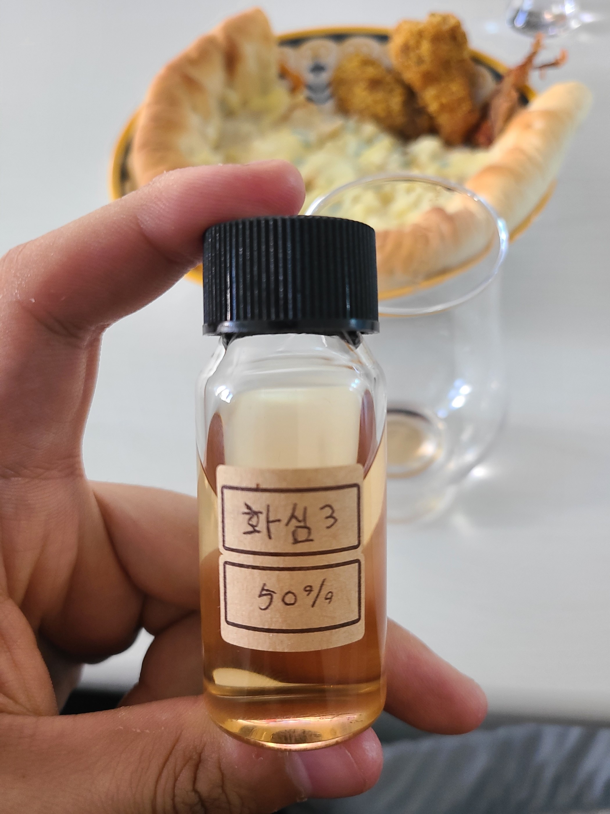 종류 : 고구마 소주 도수 : 50% N - 생고구마, 꽃, 오크, 스파이시, 이번 배치에서는 군고구마 향의 뉘앙스였지만 이번에는 생고구마에 가깝다. 생고구마의 약간의 풋내과 특유의 단내. 부즈가 살짝 올라오기는 한다. 그리고 꽃의 향이 생각보다 엄청 잘 느껴진다. 상당히 플로럴하면서 국화나 라벤더 같은 연한 꽃 향이다. 이전 배치에서 고구마를 덜어내고 꽃을 한 숟가락 더 첨가했다. 캐스크의 특징을 어느정도는 가져와서 복합적인 단 향을 내준다. (마데이라 캐스크 피니쉬) 누룩취도 덜하고 호불호를 줄이면서 대중성도 높인 것 같다. 향에서는 배치 차이를 잘 보여주는 것 같다. 이전 배치들에서는 화심 군고구마 소주라는 캐릭터성을 계속 전면에 보여줬는데, 이번에는 살짝 옆으로 빼면서 대중적인 맛을 조금 더 보여줬다. P - 고구마, 꿀, 바닐라, 꽃, 생강 고구마의 뉘앙스도 살짝 줄었지만 여전히 달달하다. 꿀, 바닐라의 맛이 생각보다 잘 느껴져서 버번캐 같다고 생각이 들었다. 향에서 느낀 것 처럼 꽃의 뉘앙스가 조금 더 강해졌다. 약간의 스파이시함도 느껴지는데 꿀 생강차가 생각났다. 맛 하나의 직관성과 깊이는 이전 배치보다 조금 떨어진 것 같다. 복잡성도 살짝 아쉽다. 배치 2만봐도 와!! 고구마!! 고구마 아이스크림!! 이런 감상이었는데, 이건 그렇지는 않다. 취향의 차이는 있겠지만 왜인지 배치 3가 조금 더 괜찮다. 아쉬운 부분이 분명 있지만 바디감과 밸런스가 더 좋다. F - 약간의 스모키함, 오크, 꿀, 사람의 취향은 역시 알다가다 모르겠군요. ** 이걸로 하이볼은 비추하겠습니다. 아까운 바이알만 날렸습니다.