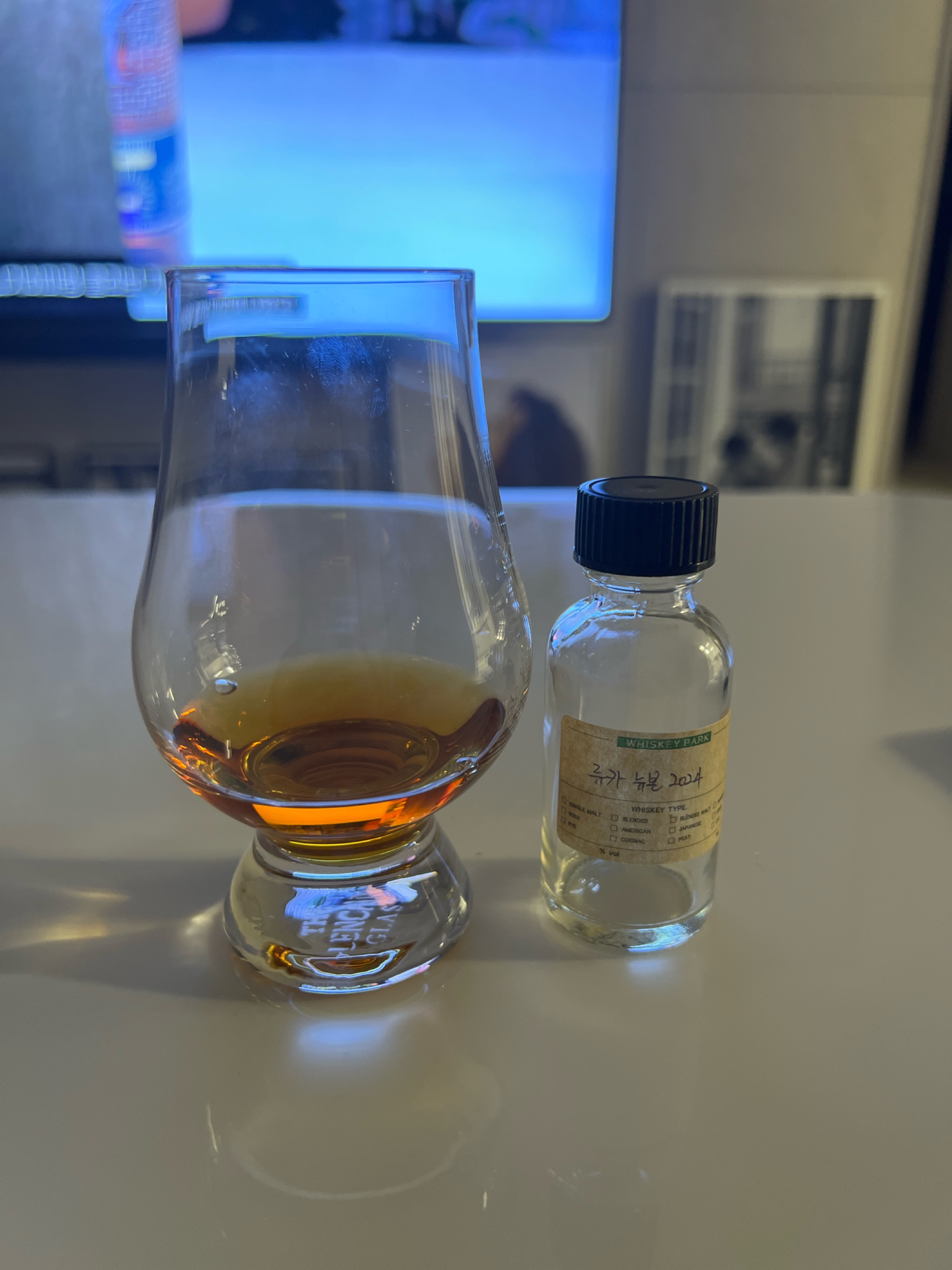 향에서 살짝 찐득한 셰리캐 향과 박하 향이 섞인 느낌이 남. 동시에 장향 또는 남은 콜라 말린 향 같음. 뉴본이라 어쩔 수 없는 부즈가 좀 느껴짐. 약간 단맛이 적고 쓴맛이 좀 섞인 카발란 솔리스트 같은 맛이 남. 피니쉬에서는 박하 같은 좀 화한 느낌과 살짝 쓴맛이 느껴짐.