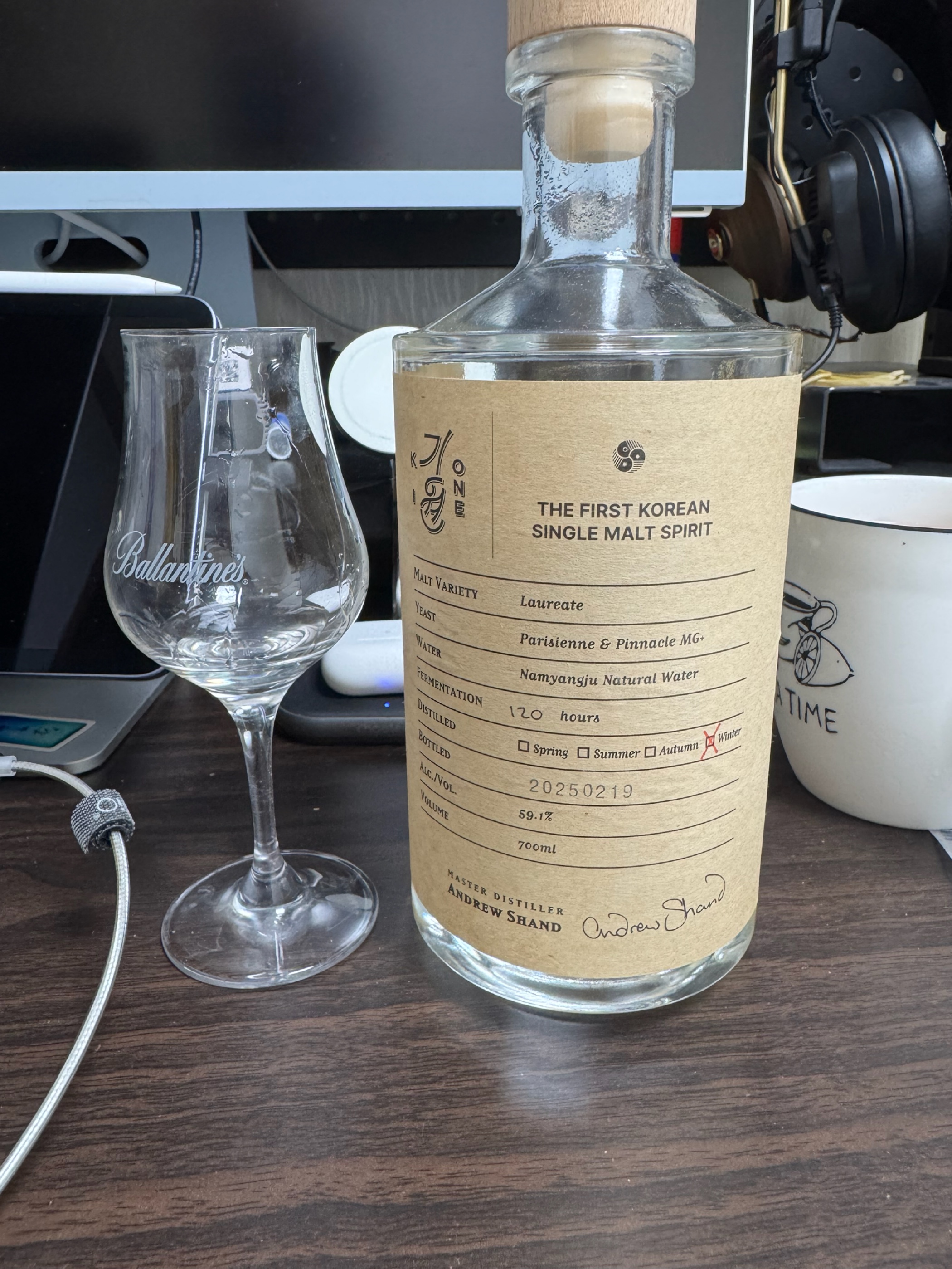 증류소 투어로 사온 스피릿입니다. N : 들판에핀 흰색 들꽃, 곡물향, 달콤함, 시트러스 P : 입안에서 오래 씹은 흰쌀밥 , 곡물 느낌 F : 곡물향이 후두부에서 놀라오나 매우 짧음, 매콤함이 조금 느껴짐