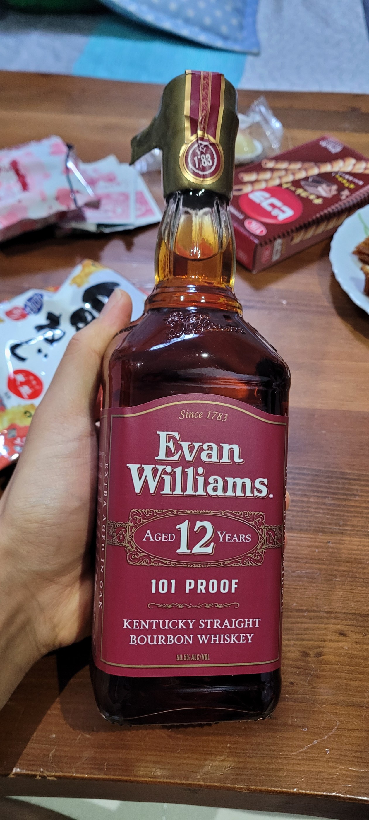 맛 : 기본에 충실한 바닐라와 캐러맬 맛이 매우 강조가 되며 건포도 특유의 달콤한 맛이 매우 인상적임. 고숙성 버번이라 그런지 진한 토스트 느낌도 있음 향 : 묵직한 나무향과 바닐라와 꿀을 섞은듯한 달달한 단향, 특유의 가죽향이 지배적임 피니쉬 : 고숙성 버번이지만 피니쉬가 약간 아쉬움. 개인적으로 피니쉬는 그렇게 오래가지 않았음 최종평가 : 기본적인 에반 윌리엄스 라인업을 마셔본 사람들이라면 한번쯤은 꼭 마셔볼만한 위스키임. 다만 국내에선 구하기 어렵고 매우 비싸니 일본에선 굉장히 저렴하게 구매 가능함. 가서 보이면 꼭 구매하는걸 추천함