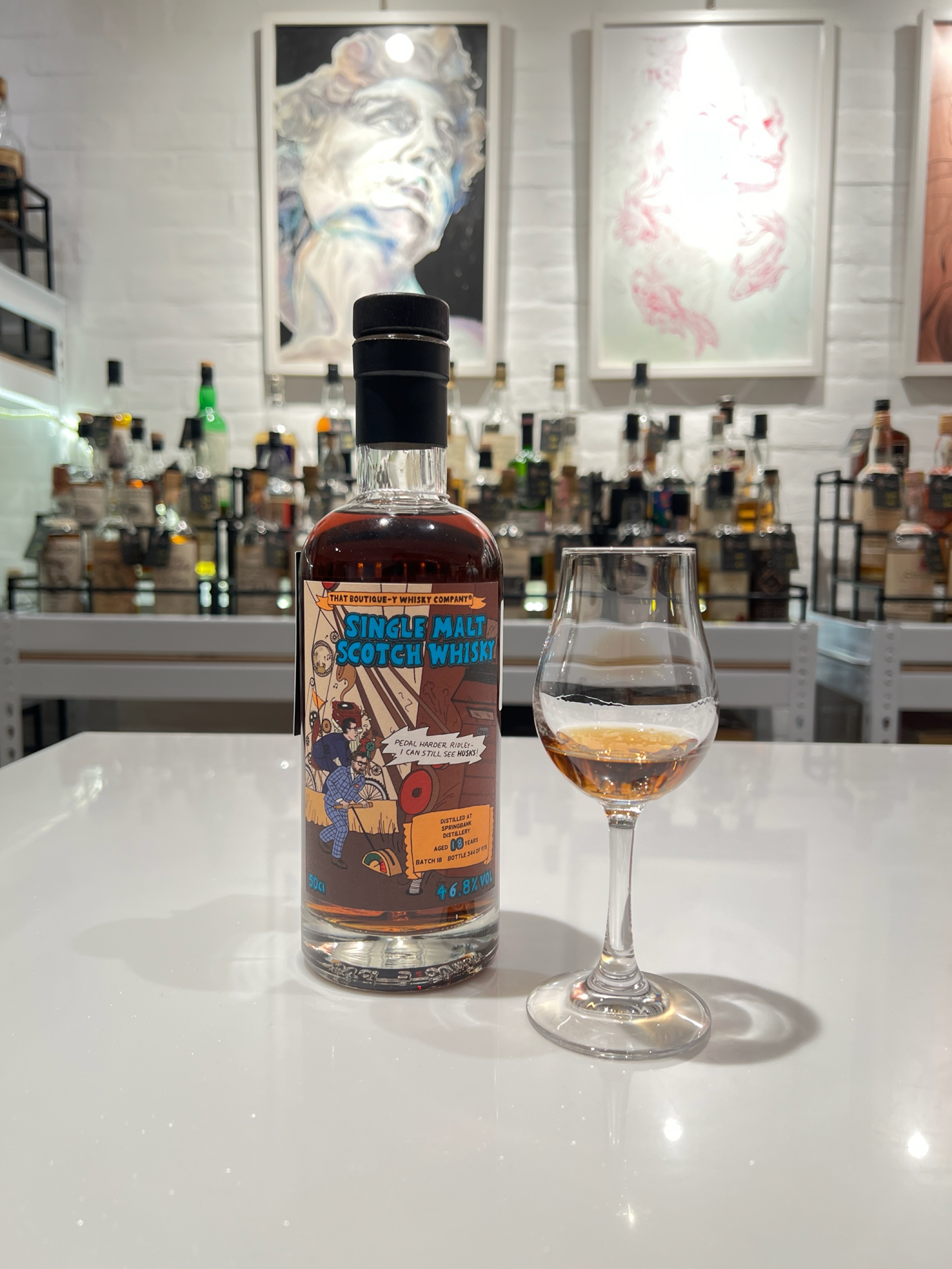 That Boutique-y Whisky Company 스프링뱅크 18년 고소함과 단내가 향에서 동시에 느껴짐. 목캔디 맛처럼 살짝 달달한데 동시에 화한 느낌. 피니쉬에서는 고소한 맛은 빠진 비터스윗 맛이 입에 길게 남음.