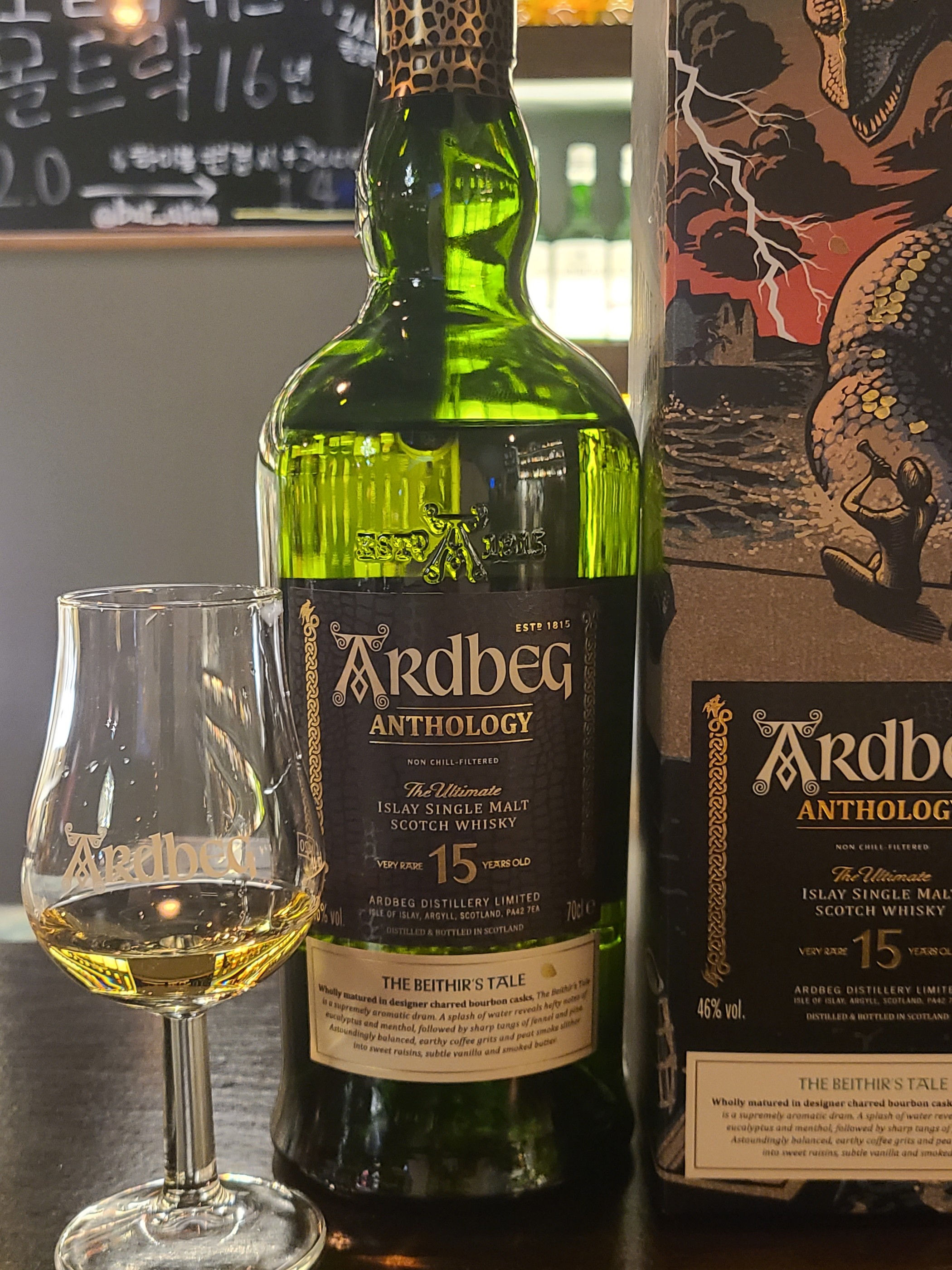 종류 : 싱글몰트 위스키 도수 : 46% 컨디션 : 뚜따 한줄평 : 피트 오켄토션 N - 황, 흙, 부즈, 스모키, 비터, 식물뿌리, 바닐라, 시트러스, 미네랄 뚜따 하자마자 흙내음과 황이 빡 올라온다. 부즈도 상당히 강하다. 아드벡의 스모키한 뉘앙스보다 황내가 더 강하다. 식물이 뿌리같은 뉘앙스와 비터의 쌉싸름함이 잡힌다. 엄청 흔드니깐 바닐라와 단내가 살짝 올라오지만 여전히... ㅎ 맹한 느낌도 강하고 시트러스한 느낌도 엄청 꿉꿉하다. 그렇게 좋지는 않다. 발향력이 너무 작다. 진짜 안풀려서 이모양인거지?? P - 비터, 바닐라, 레몬, 건과류 F - 쓴 맛, 나무뿌리, 설탕 ...?? 내가 컨디션이 나쁜가 했는데, 같이 마신분들 모두 평이 비슷하다... 진짜 좋아하는 아드벡인데 선을 많이 넘었다. 환불 마렵네.