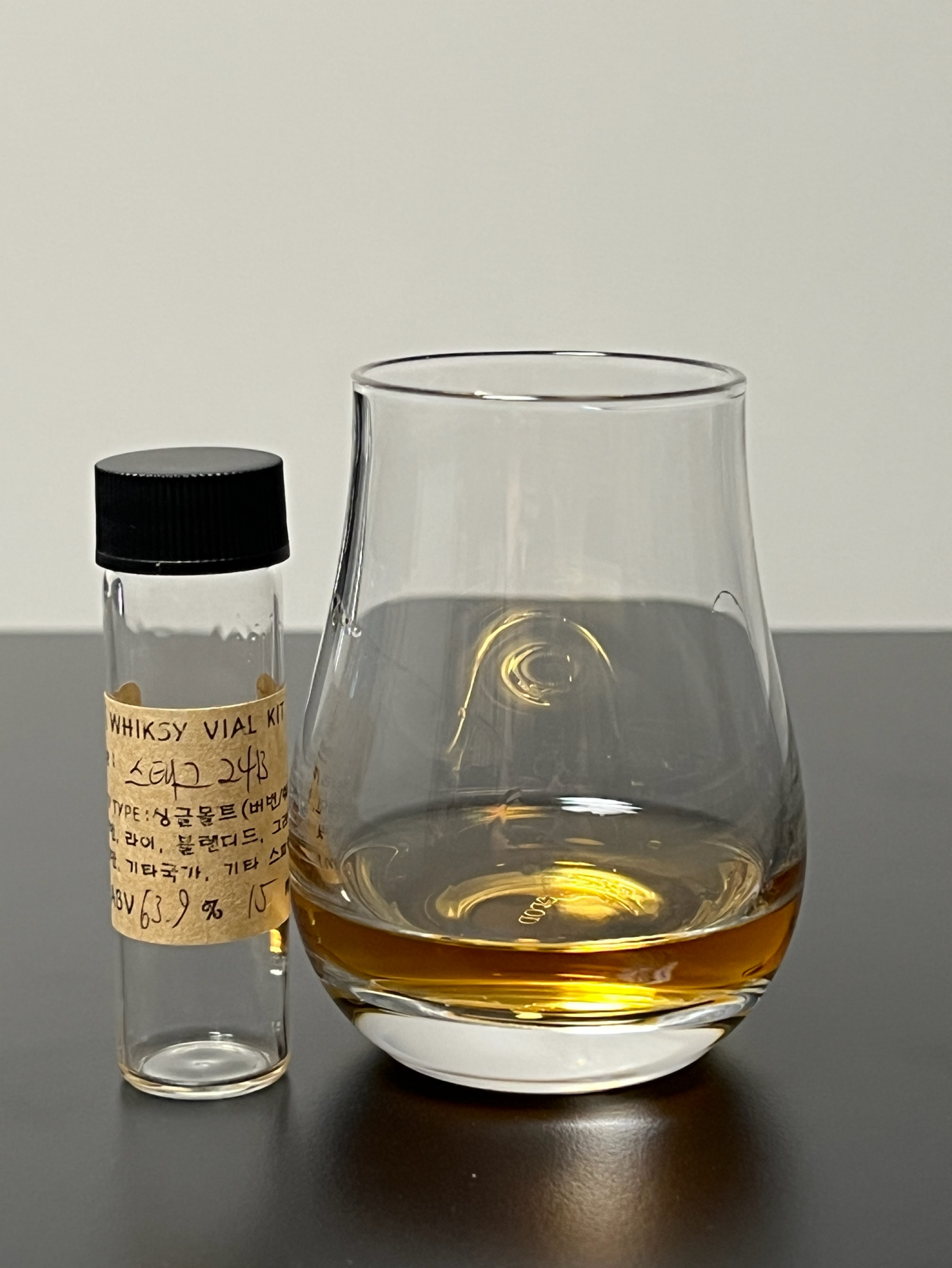 스태그 24B 달달한 바닐라 카라멜, 오렌지 시트러스, 살짝 체리쪽 과일향이 있음. 그리고 약간의 아세톤, 민트향. 달달함이 찐하게 느껴지고 카라멜, 과일쨈이 강하게 느껴짐. 타격감과 맛았는 달달함이 적절히 어울려 느껴짐. 목넘김 후에도 옅어진 맛이 길게 이어짐.