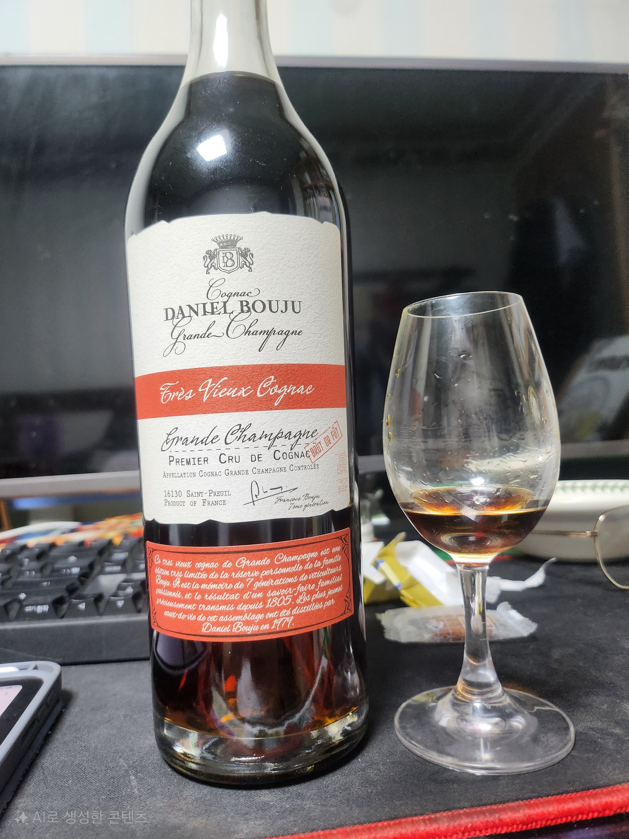 꼬냑을 파기 시작했다면 한번쯤은 들어봤을 뷰릇뷰릇 정말정말 강하다 일반적으로 포도, 초콜릿 하면 생각나는 메이커 엑소 꼬냑/ 카발란 솔리스트 일부/진하게뽑은 알라키 등에서 과장없이 두배에 근접한 향이 폭발한다 진득한 건포도라기보다는 제법 청포도스러운 늬앙스가 꼬냑 특유의 민티함과함께 강하게 올라오는데 향만으로 엄청난 파괴력을 가진다 꼬냑 특유의 럼보단 약하지만 조금씩 있는 에스테르도 있으며 맞지 않는 지인은 이에 향부터 몸서리쳤다 맛에서는 호두의 껍질, 포도의 가지를 모아서 먹는듯한 강한 탄닌감과 떫음, 텁텁함이 입을 지배하며 동시에 그에서 오는 예상보다는 강한 달콤한 포도의 맛과 카카오닙스의 씁쓸한 맛이 남는다 특유의 질감과는 별개로 40년의 숙성감인지는 비교군 부족으로 알수 없으나 그것이 충분히 느껴질 정도로 알콜감은 컷되어있다 다른걸 먹거나 마시지 않는다는 가정하에 영원히 이어질 듯한 피니시를 남긴다 40년숙성(정보보족으로 평균인지 최소인지 불분명)의 cs라는 엄청난 스펙과 사진에서 볼 수 있듯 모니터와 닮아있는 미친 색상, 그에 비해 저렴한 일본가(26000~27500엔가량),그리고 상기한 맛이 강강강으로 대폭발하는점에 있어 도파민 1황급 술이자 꼬냑계에서 빠와 까를 미치게하는 슈퍼스타 굉장히 궁금해질법한 스펙이지만 반드시 한잔 마셔보고 바틀을 구매하는것을 추천..