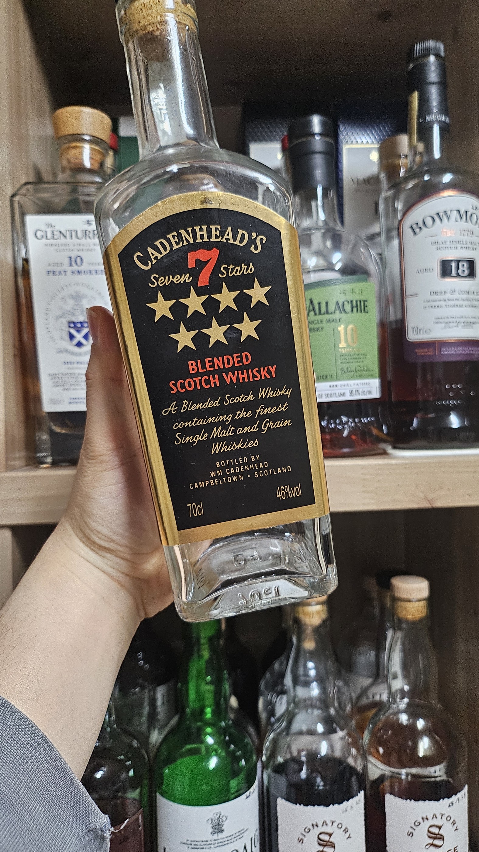 23번째 바틀킬인 카던헤즈 세븐스타즈 입니다. 8점으로 시작해서 7점으로 끝난 위스키입니다. 오픈직후 굉장히 초코초코하며 밀크초코였는데 에어링될수록 그레인이 올라오며 아쉬운 마무리를 보여집니다. 10만원 미만에서 초코를 느껴보고싶다.! 그럼 강추합니다. 마지막까지 굉장히 달달하며 셰리하지만 그레인취가 올라오며 아쉬운 마무리~재구매 의사는 없습니다.