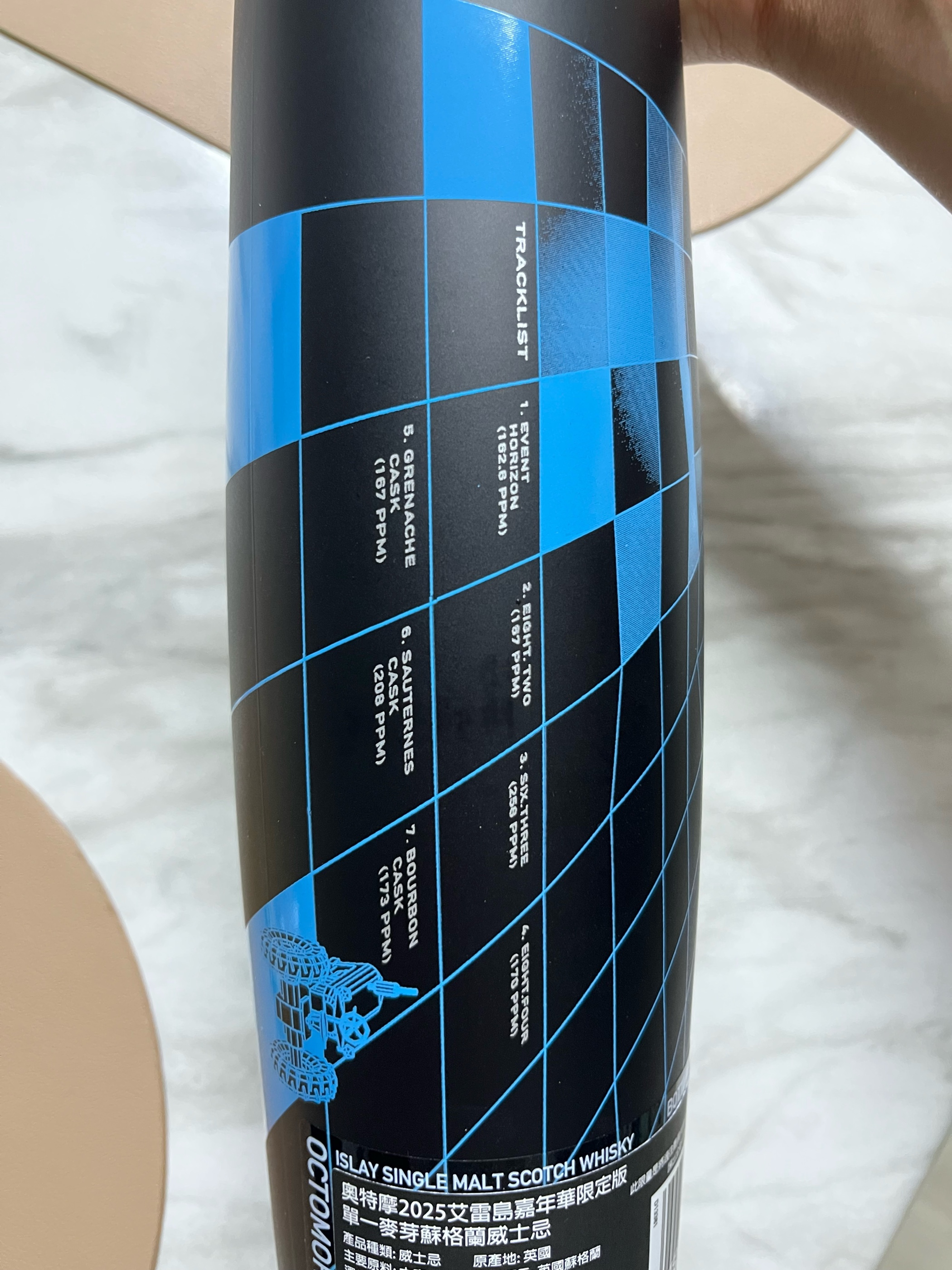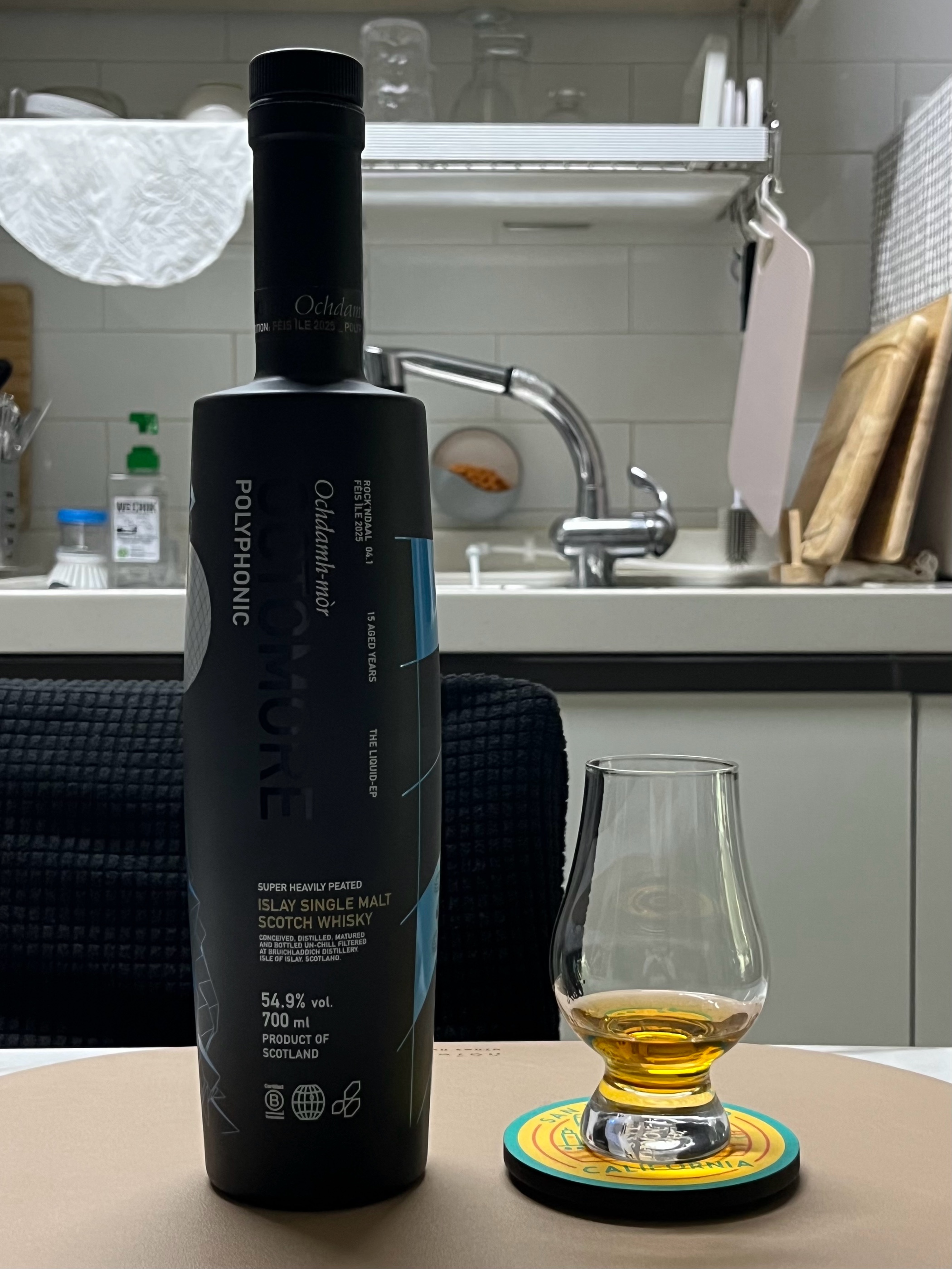 Bottled 2025 (15 yrs) Event Horizon + Octomore 8.2 + Octomore 6.3 + Octomore 8.4 + Grenache Cask + Sauternes Cask + Bourbon Cask 54.9% 700ml N) 유산취, 요오드, 스모키, 갈변된 사과, 푸룬, 포도, 무화과, 청포도, 메론, 시즈닝, 하몽, 살라미, 밀크 초콜릿, 바닐라, 솔티드 카라멜 - 브룩라디의 특징인 유산취와 요오드, 스모키 기반의 피트감이 부드럽게 다가온다. 코를 전혀 찌르지 않고 꽉 채워주는 느낌. 특유의 유산취와 스모키한 느낌이 베이스를 깔아주면서 끝까지 이어진다. - 갈변된 사과나 푸룬같은 건과일의 꿉꿉하면서 가라앉는 듯한 단내가 난다. - 이후 포도송이와 무화과에서 날 듯한 신선하고 수분기 있는 연기같은 단내로 바뀌고 청포도, 메론같은 박과류의 단내로 넘어가면서 단내의 신선도와 수분기가 점점 늘어나는 느낌이다. - 향의 끝으로 갈수록 짠내가 강해지는데 후추, 허브, 향신료 등이 들어간 고기 시즈닝과 하몽, 살라미같은 짭짤한 건조육의 향이 난다. - 부드럽고 실키한 질감인데 아직 조금 갇힌 것 같다. 에어링이 되고 피트도 조금 빠지면 더 풍부한 향이 나올 것 같다. 약 55도인데도 불구하고 알콜이 치는 느낌이나 도수감이 없는 편이다. - 한모금 마신 후에 밀크 초콜릿과 바닐라, 솔티드 카라멜의 향이 강하게 난다. 스니커즈를 따뜻한 우유에 녹이면 이런 향이 날 것 같다. P) 망고, 블루베리, 딸기, 건포도, 푸룬, 스모키, 구운 과일, 김, 몰트, 아몬드, 마카다미아 - 산미가 없는 과일의 단 맛. 잘 익은 망고, 블루베리, 딸기같은 과일의 단 맛과 건포도, 푸룬같은 건과일의 진한 단 맛이 처음 입 안을 채운다. - 이후 스모키한 느낌의 피트감이 들어오면서 숯에 굽거나 훈연한 듯한 과일 맛이 느껴진다. 옥토모어를 먹을 때마다 느끼는 잘 깎은 피트감이 유독 잘 느껴진다. 둥글둥글한 알사탕이 입에 꽉 들어찬 듯한 느낌. - 김같은 짠맛과 감칠맛 이후 몰티함과 아몬드, 마카다미아같은 견과류의 고소한 단 맛이 퍼지면서 마무리된다. 입에서 굴릴수록 고소한 맛이 강해지는 느낌. - 조금 오일리한 듯한 질감. 꽉 차는 바디감. F) 스모키, 유산취, 가죽, 오크, 사과, 딸기, 포도주스, 굵은 소금, 김, 민트 - 스모키한 느낌이 입안을 꽉 채운다. 꼬릿한 치즈같은 유산취와 씁쓸한 가죽, 오키한 느낌이 잠깐 혀에 남는다. - 이후 붉은 사과, 딸기, 포도주스같은 쥬시한 단 맛이 잠깐 났다가 굵은 소금, 김의 짠맛과 감칠맛이 느껴지고 민트를 살짝 씹은 것처럼 상쾌하면서 화한 느낌이 입에 퍼진다. - 긴 피니쉬. 김 맛이 끝까지 길게 남는다. “현행 옥토모어의 고점이라고 할만하다” 옥토모어의 역사를 블렌딩했다고 하는 폴리포닉. 음악 앨범이 컨셉인건지 블렌딩 목록도 TRACKLIST, 바틀의 부제도 THE LIQUID-EP다. 옥토모어의 특징이자 장점인 부분들을 극대화한 바틀이라고 생각한다. 옥토모어를 처음 먹고 빠지게 됐던 이유가 강피트인데도 잘 깎여서 부담스럽지 않은, 그런 피트감인데 지금까지 먹어본 옥토모어 중 이 바틀이 그 느낌을 가장 잘 살린 것 같다. 조금 풀린 이후가 더욱 기대되는 한 잔.