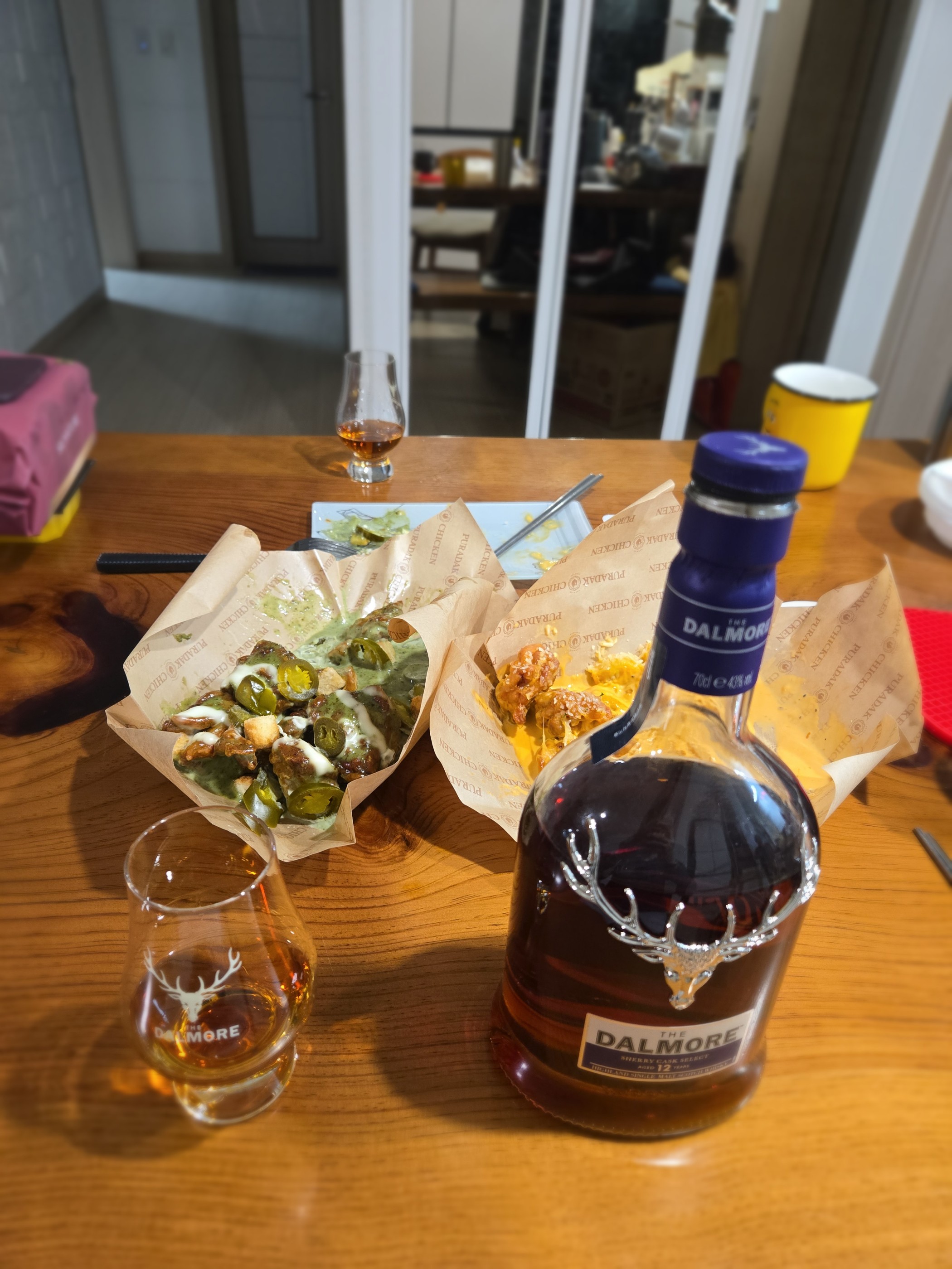 달모어를 좋아해서 수집하는중인 위린이 입니다. 메탈케이스 모으면서 12년 셰리가 한병 남아서 퇴근후 한잔.. 푸라닭 치킨과 은근 궁합이 좋네요.