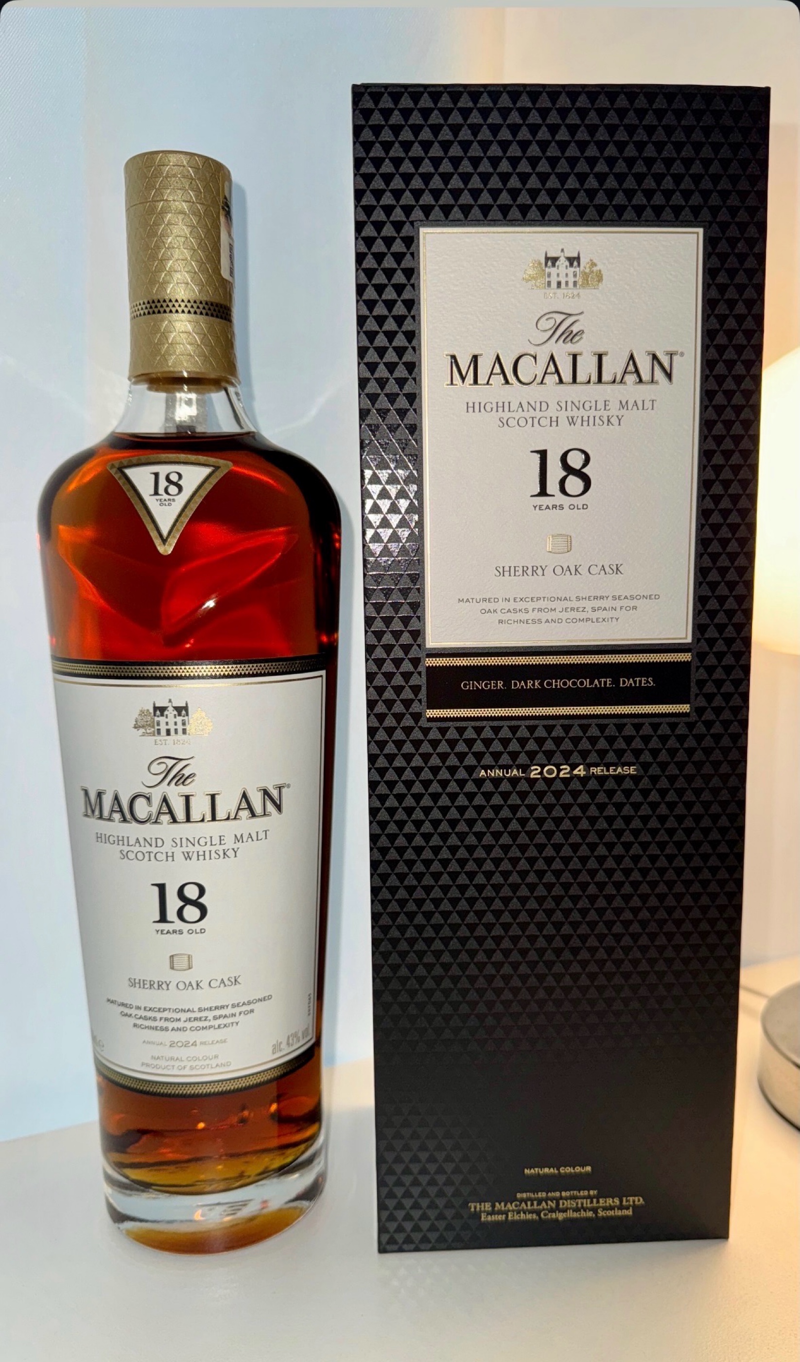Tasting Note: The Macallan 18yo Sherry Oak (2024 Release) "셰리 위스키의 왕좌, 변하지 않는 고결한 풍미의 기준" 🏷️ 기본 정보 (Information) • 분류: 싱글 몰트 위스키 (오피셜 병입) • 증류소: 맥캘란 (Macallan) • 숙성 연수: 최소 18년 이상 숙성 • 캐스크 타입: 핸드픽 셰리 시즈닝 오크통 (Sherry Seasoned Oak Casks from Jerez) • 도수 (ABV): 43% • 특이사항: 맥캘란의 상징적인 '셰리 오크' 시리즈 중 가장 인기가 높은 핵심 라인업 👃 향 (Aroma) "말린 과일의 우아함과 오렌지 껍질의 싱그러움" 잔에 따르자마자 셰리에 절인 건포도와 말린 살구의 진하고 달콤한 향이 코를 기분 좋게 자극합니다. 그 뒤로 오렌지 타르트를 연상시키는 산뜻한 시트러스와 생강 줄기의 알싸함이 복합적으로 어우러집니다. 시간이 흐를수록 시나몬의 따뜻한 스파이스와 맥캘란 특유의 부드러운 바닐라 향이 층층이 피어오르며 완벽한 균형미를 보여줍니다. 👅 맛 (Taste) "다크 초콜릿의 묵직함과 대추야자의 농밀한 단맛" 입안을 부드럽게 감싸는 질감(Mouthfeel)이 일품입니다. 다크 초콜릿의 쌉싸름하면서도 달콤한 풍미가 중심을 잡고, 그 위로 대추야자와 건포도의 농축된 단맛이 퍼져 나갑니다. 43%의 도수임에도 불구하고 바디감이 상당히 묵직하며, 중반부에 느껴지는 구운 오크의 고소함과 생강의 스파이시함이 맛의 단조로움을 막아주며 고급스러운 풍미를 완성합니다. 🏁 여운 (Finish) "잔잔하게 스며드는 긴 여운과 생강의 따뜻함" 피니시는 매우 길고 우아하게 지속됩니다. 말린 과일의 달콤한 잔향이 입안 전체에 잔잔하게 남으며, 마지막에는 따뜻한 생강과 오크의 뉘앙스가 기분 좋게 마무리됩니다. 자극적이지 않으면서도 존재감이 확실한 여운은 왜 맥캘란 18년이 전 세계적인 마스터피스로 추앙받는지 고개를 끄덕이게 만듭니다. ━━━━━━━━━━━━━━━━━━━━ 🥃Tasting Note가 도움이 되셨다면? ❤️ 좋아요와 댓글 부탁드립니다! ━━━━━━━━━━━━━━━━━━━━