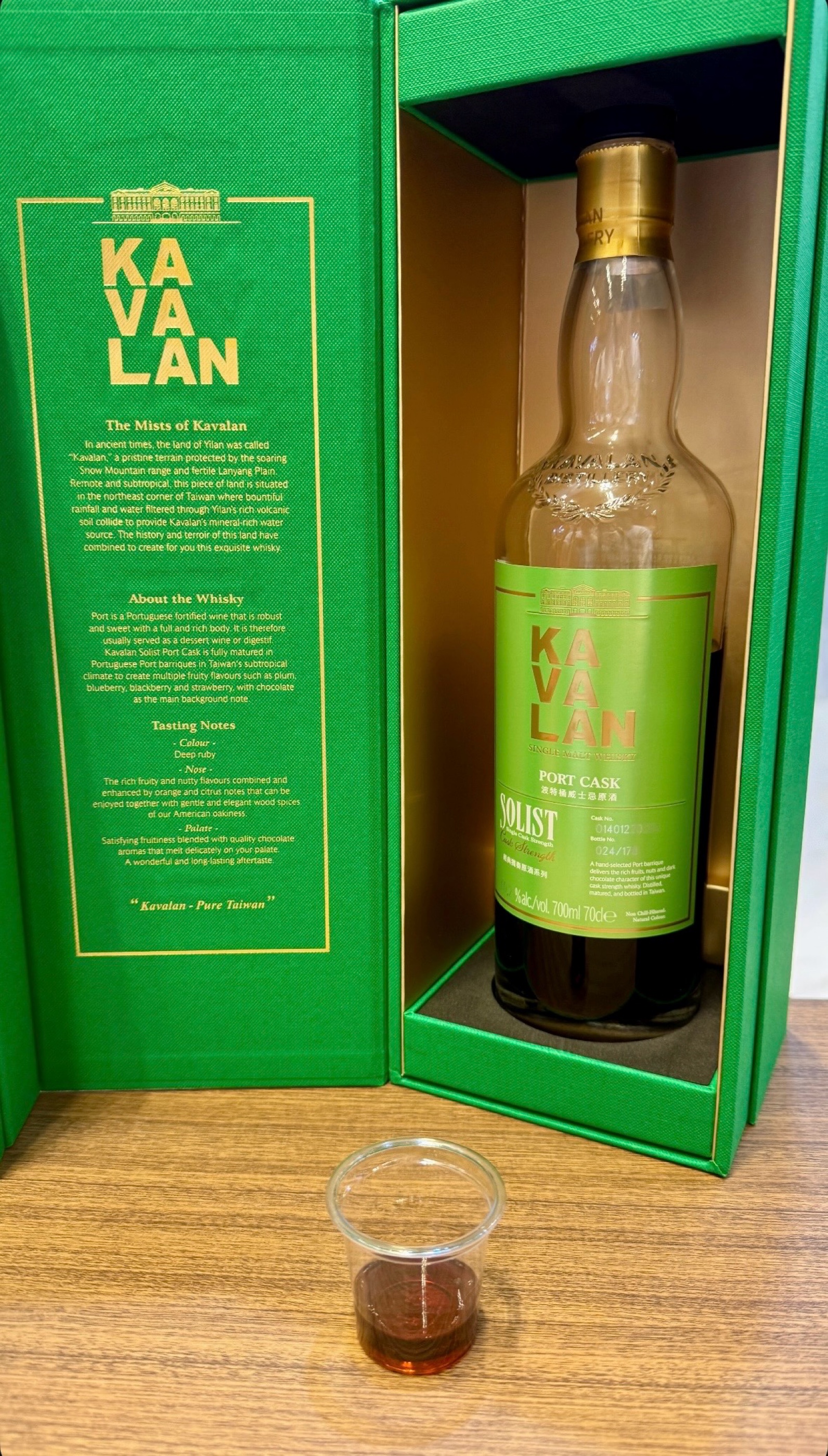 Tasting Note: Kavalan Solist Port Cask Strength "검붉은 과일의 유혹, 벨벳처럼 부드럽고 진한 초콜릿의 향연" 🏷️ 기본 정보 (Information) • 분류: 싱글 몰트 위스키 (오피셜 병입) • 증류소: 카발란 (Kavalan) • 캐스크 타입: 포르투갈 포트 와인 캐스크 (Port Cask) • 도수 (ABV): 50~65% (Cask Strength, 싱글 캐스크별 상이) • 특이사항: 내추럴 컬러(Natural Colour), 비냉각 여과(Non-Chill Filtered) 👃 향 (Aroma) "자두와 블루베리의 농축된 단맛, 그리고 은은한 견과류" 잔에 따르는 순간, 포트 와인 캐스크 특유의 진한 자두, 블루베리, 블랙베리 향이 코를 가득 채웁니다. 마치 잘 졸여진 베리 잼을 코앞에 둔 듯한 농밀함이 느껴지며, 그 뒤로 구운 견과류의 고소함과 시트러스한 화사함이 겹겹이 쌓여 있습니다. 비노 바리끄보다 더 어둡고 묵직한 과일의 아로마가 특징입니다. 👅 맛 (Taste) "입안을 감싸는 다크 초콜릿과 딸기의 크리미한 조화" 첫 모금에서 카발란 CS 특유의 강력한 바디감이 느껴지지만, 이내 다크 초콜릿의 쌉싸름한 달콤함이 혀를 벨벳처럼 부드럽게 감쌉니다. 이어지는 딸기와 검은 과일들의 풍미가 감칠맛과 함께 터져 나오며, 포트 와인 캐스크 특유의 리치하고 크리미한 질감이 입안 가득 만족감을 선사합니다. 🏁 여운 (Finish) "레몬의 상큼함과 패션프루트가 남기는 섬세한 스파이스" 강렬한 맛 뒤의 여운은 의외로 섬세하고 산뜻합니다. 레몬 같은 시트러스함이 입안을 깔끔하게 정리해 주며, 패션프루트의 이국적인 향기가 잔잔하게 남습니다. 마지막까지 이어지는 따뜻한 우드 스파이스의 기운이 위스키의 품격을 완성해 줍니다. ━━━━━━━━━━━━━━━━━━━━ 🥃Tasting Note가 도움이 되셨다면? ❤️ 좋아요와 댓글 부탁드립니다! ━━━━━━━━━━━━━━━━━━━━