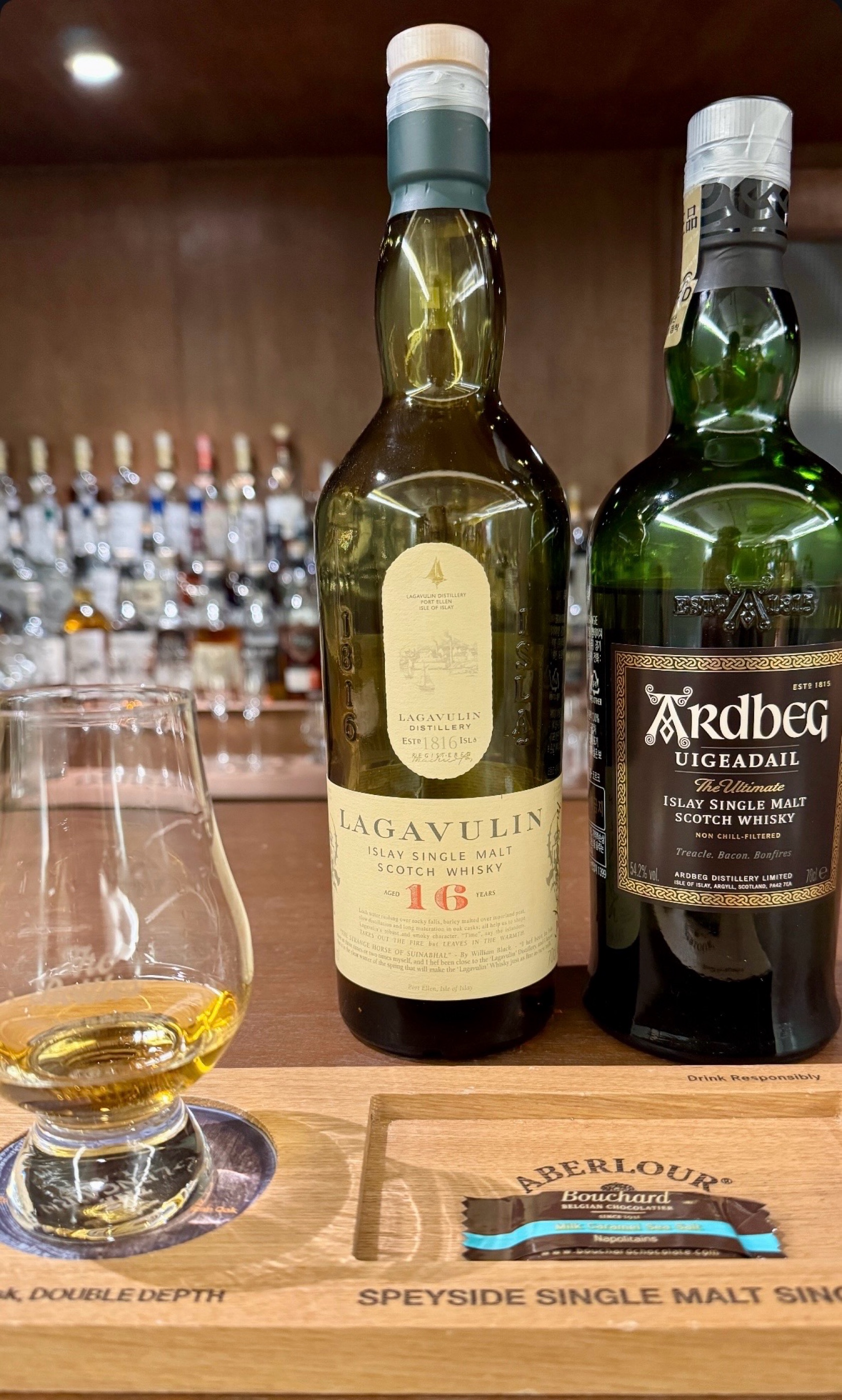 Tasting Note: Ardbeg Uigeadail "어둠 속에서 피어오르는 연기와 꿀의 이중주, 아일라의 강렬한 포용" 🏷️ 기본 정보 (Information) • 분류: 싱글 몰트 위스키 (Single Malt Scotch Whisky) • 증류소: 아드벡 (Ardbeg) - 아일라 남부 • 숙성 연수: NAS (고숙성 셰리 캐스크 원액이 블렌딩됨) • 캐스크 타입: 엑스-버번 + 엑스-셰리 (Sherry Cask Influence) • 도수 (ABV): 54.2% (Cask Strength / 배치에 따라 상이) • 특이사항: 2009년 위스키 성경(Whisky Bible) 올해의 위스키 선정, 냉각 여과 없음 👃 향 (Aroma) "스모키한 베이컨과 건포도, 그리고 갓 볶은 커피빈" 잔을 흔들면 아드벡 특유의 강렬한 피트 연기와 해수의 짭조름함이 먼저 코를 때립니다. 하지만 곧바로 셰리 캐스크에서 오는 건포도와 설탕에 절인 과일의 달콤함이 연기 사이를 뚫고 올라옵니다. 시간이 지날수록 갓 볶은 커피빈과 다크 초콜릿의 묵직한 향이 겹겹이 쌓여 아주 복합적이고 미스터리한 아로마를 형성합니다. 👅 맛 (Taste) "훈제 고기의 감칠맛과 꿀의 달콤함, 그리고 폭발적인 스파이스" 입안에 닿는 순간 54.2%의 도수답게 묵직한 타격감이 느껴집니다. 훈제 베이컨과 바비큐 같은 감칠맛이 혀를 먼저 감싸고, 이내 마누카 꿀과 대추야자의 진득한 단맛이 조화롭게 나타납니다. 중반부에는 검은 후추와 계피 같은 강력한 스파이스가 터져 나오며, 피트의 스모키함과 셰리의 달콤함이 입안에서 완벽한 균형을 이룹니다. 🏁 여운 (Finish) "긴 여운 속에 남는 타르 향과 달콤한 카라멜의 잔상" 피니시는 매우 길고 압도적입니다. 입안에는 타르와 모닥불 연기의 잔향이 묵직하게 남으며, 마지막에는 카라멜과 말린 과일의 달콤함이 따뜻한 온기와 함께 아주 오랫동안 머무릅니다. ━━━━━━━━━━━━━━━━━━━━ 🥃 Tasting Note가 도움이 되셨다면? ❤️ 공감과 좋아요 부탁드립니다! ━━━━━━━━━━━━━━━━━━━━