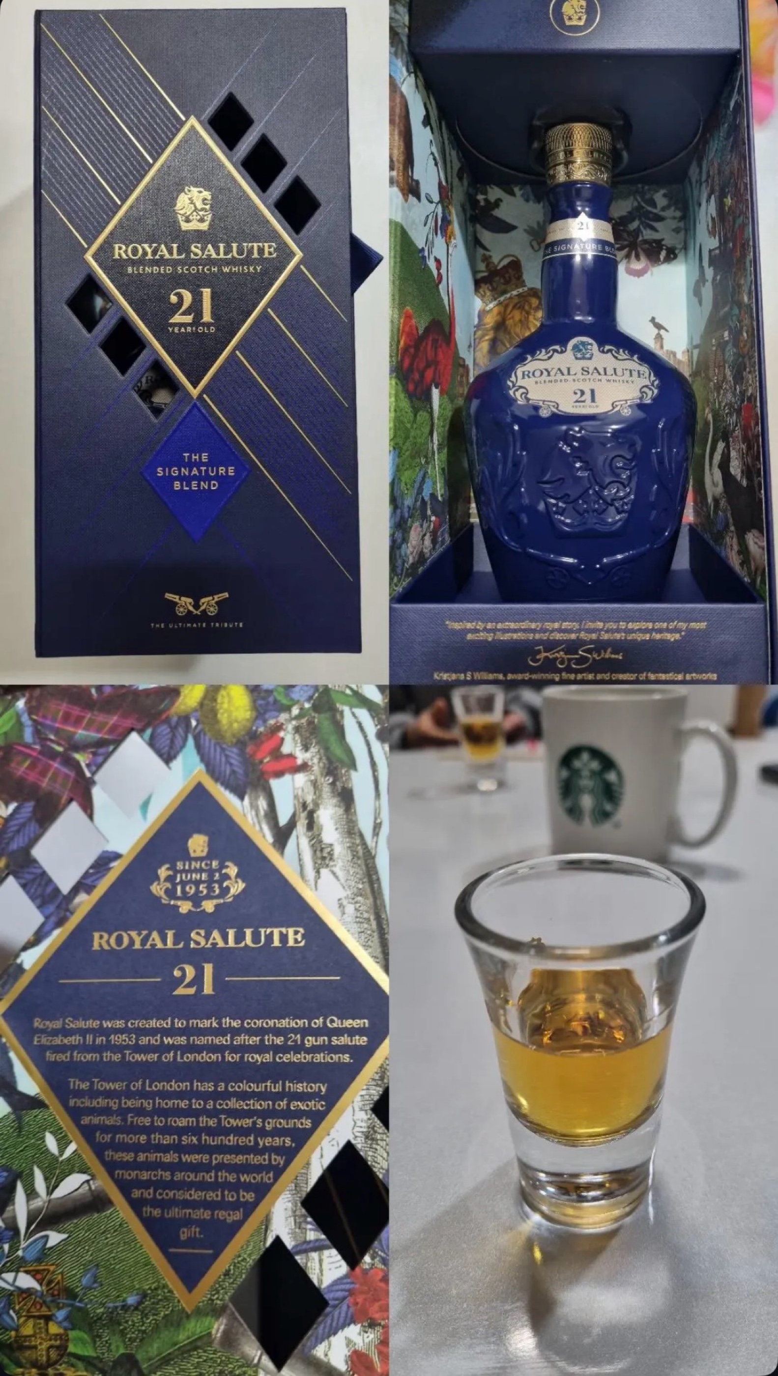 Tasting Note: Royal Salute 21yo The Signature Blend 왕의 위스키, 21년의 시간이 빚어낸 농밀한 과실향과 우아한 품격 🏷️ 기본 정보 (Information) • 분류: 블렌디드 스카치 위스키 (Blended Scotch Whisky) • 제조사: 시바스 브라더스 (Chivas Brothers) • 숙성 연수: 최소 21년 이상 숙성된 원액 사용 • 도수 (ABV): 40% • 특이사항: 영국 왕실의 21발 예포(Royal Salute)에서 이름을 따왔으며, 장인이 수작업으로 제작한 도자기 병(Flagon)이 상징 👃 향 (Aroma) 풍부한 셰리의 달콤함과 잘 익은 배, 그리고 화사한 가을 꽃 잔을 코에 가져가면 셰리 캐스크에서 오는 짙은 자두와 건포도의 향기가 가장 먼저 반겨줍니다. 그 뒤로 스페이사이드 몰트 특유의 달콤한 배와 오렌지 마멀레이드의 시트러스함이 이어지며, 마지막에는 바닐라 빈과 은은한 헤더 꿀의 향이 층층이 쌓여 아주 고급스러운 아로마를 형성합니다. 👅 맛 (Taste) 입안을 감싸는 리치한 질감과 마멀레이드, 그리고 구운 견과류 머금는 순간 21년 숙성 원액들이 선사하는 묵직하고 리치한 질감이 입안을 가득 채웁니다. 잘 익은 과일의 농축된 단맛과 함께 구운 아몬드, 호두의 고소함이 조화롭게 나타나며, 중반부에는 헤이즐넛과 밀크 초콜릿의 부드러움이 느껴집니다. 40%의 도수임에도 맛의 밀도가 매우 높아 한 모금마다 깊은 만족감을 줍니다. 🏁 여운 (Finish) 오랫동안 지속되는 따뜻한 스파이스와 달콤한 연기의 흔적 피니시는 아주 길고 우아하게 이어집니다. 입안에는 오크의 타닌감과 함께 아주 미세하고 부드러운 훈연 향이 잔잔하게 남으며, 마지막에는 달콤한 바닐라와 따뜻한 생강의 여운이 정갈하게 마무리됩니다. ━━━━━━━━━━━━━━━━━━━━ 🥃 Tasting Note가 도움이 되셨다면? ❤️ 공감과 좋아요 부탁드립니다! ━━━━━━━━━━━━━━━━━━━━